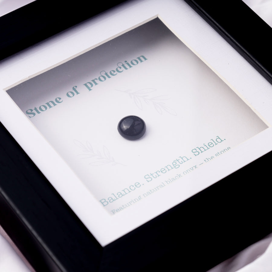 This Health and Happiness Frame features natural onyx—the stone of grounding and protection. Known for warding off negativity, building inner strength, and promoting emotional balance, this frame carries powerful protective energy.
