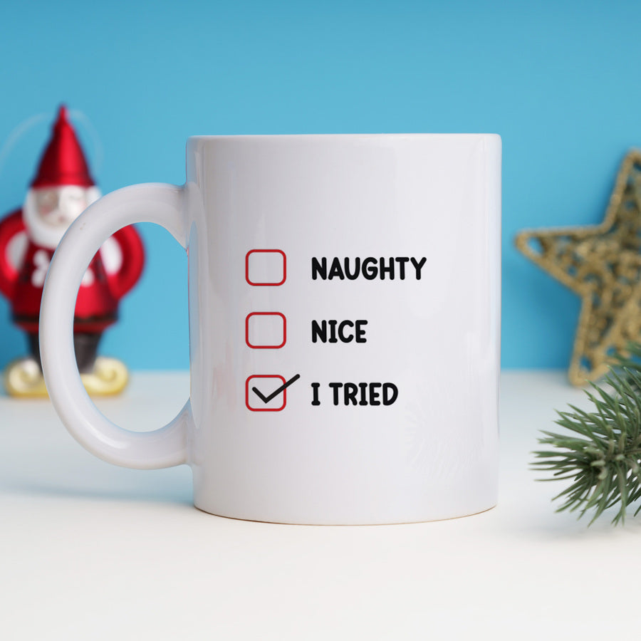 Surprise a Christmas-crazy person with their very own special christmas mug with santa’s naughty, nice or just plain I tried list. Perfect for that friend who’s maybe a little nice, a little naughty, and definitely a lot of ‘I Tried.’