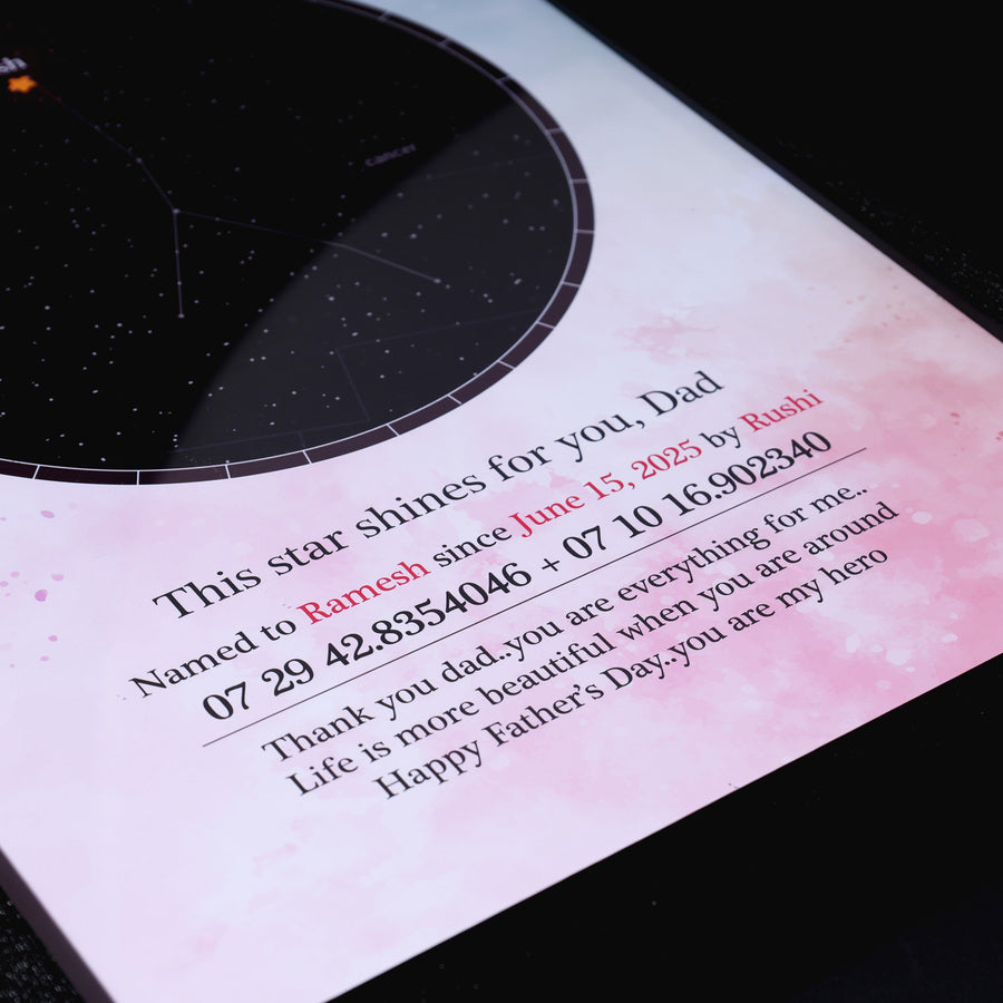 The star comes customized with your father's name and a constellation chart showcasing the exact location of the star. You can also add a personalized message to make it even more touching.