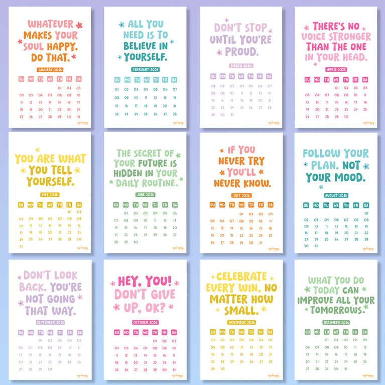 A happy little calendar that keeps your mood in the right place, no matter how the day goes. Every month it gives you a reminder to choose yourself, choose joy, and choose better days.Perfect for anyone who wants their desk to feel lighter and more positive. And a lovely new-year gift for someone who could use a bit more balance.Specifications-Size of the Easel : 4.5 x 3.5 inchesSize of Cards : Size : 3.4 x 5 inches
