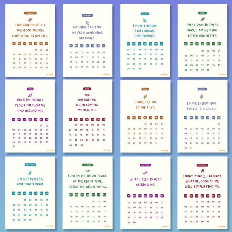 A calendar that will be your biggest cheerleader for every month of the year 2026This Affirmation Calendar gives you and your loved ones a reason to smile each month with its cute design and powerful messages. From “I am enough” to “I am worthy of good things” this calendar keeps the positivity flowing throughout the year. Specifications-Easel Size : 6 x 4 inches, crafted in pine wood.Calendar print : 8.5 x 12.5 cms