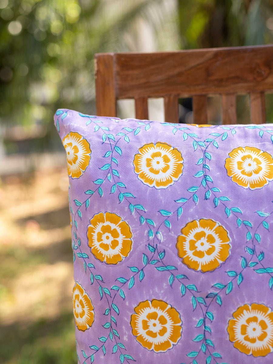 Iris Block Printed Cotton Cushion Cover - 20 Inch