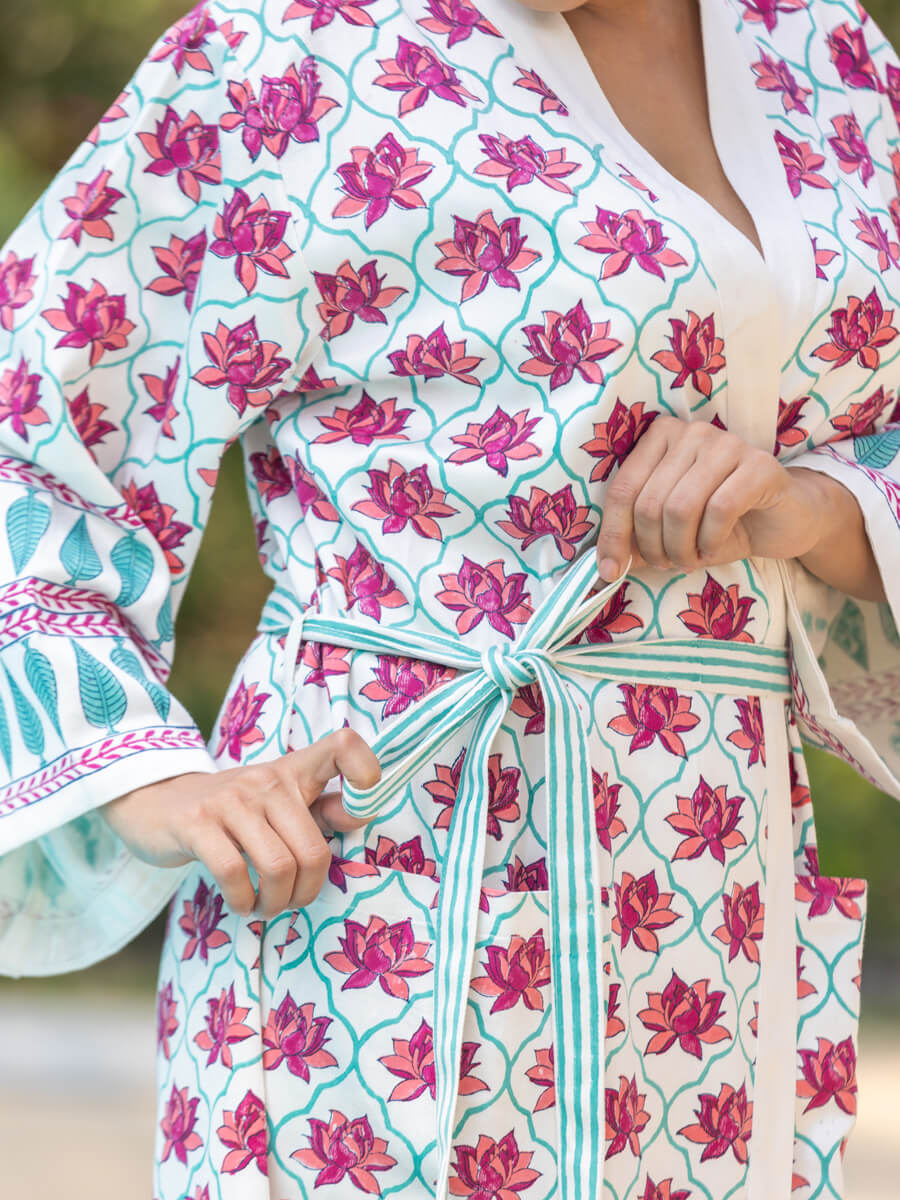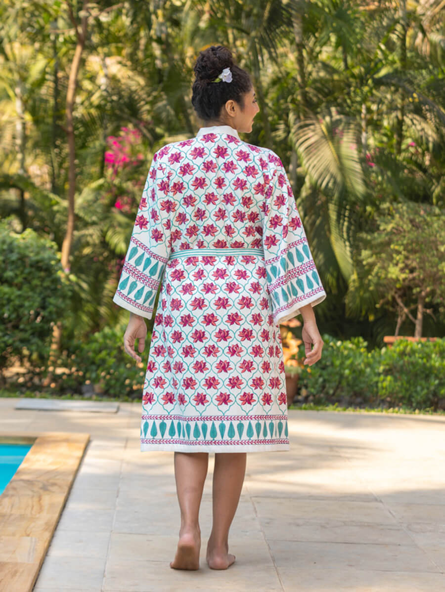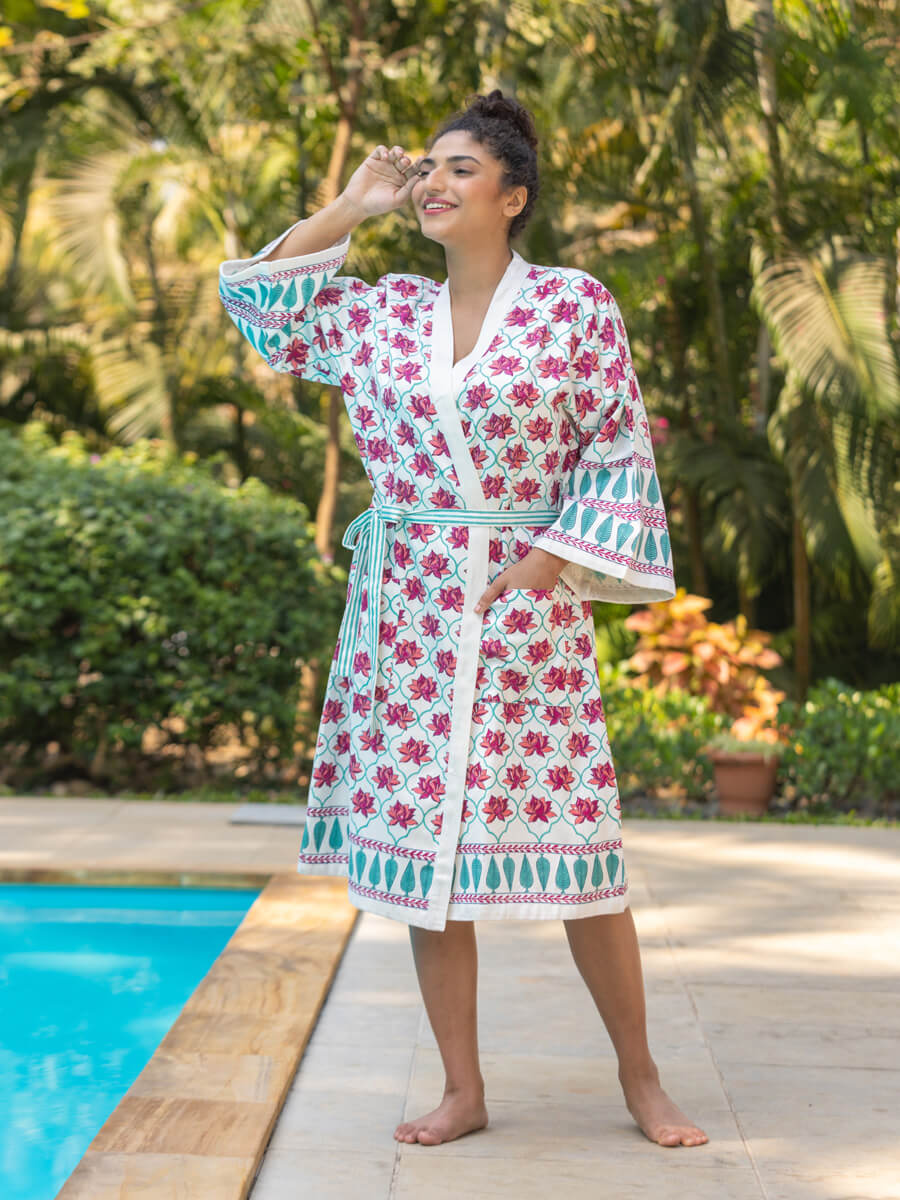 Laila Block Printed Luxury Cotton Bath Robe