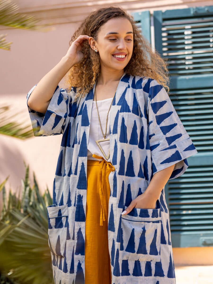 Tulum Dabu Hand Block Printed Cotton Kimono Jacket