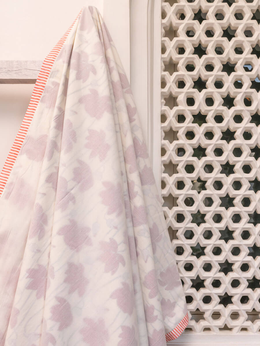Padma or the Lotus is a central figure in many art forms including Pichhwai. It's a flower with meaning, beauty, and great cultural significance. The origin of the Lotus in Hindu mythology goes as far back as 'Samudra Manthan'. Its first association is with Lakshmi who also emerges from 'Samudra', hence, is referred to as Padmaja or Padmavati. This hand block printed home textiles collection is inspired by the beautiful lotus and other nature inspired elements.