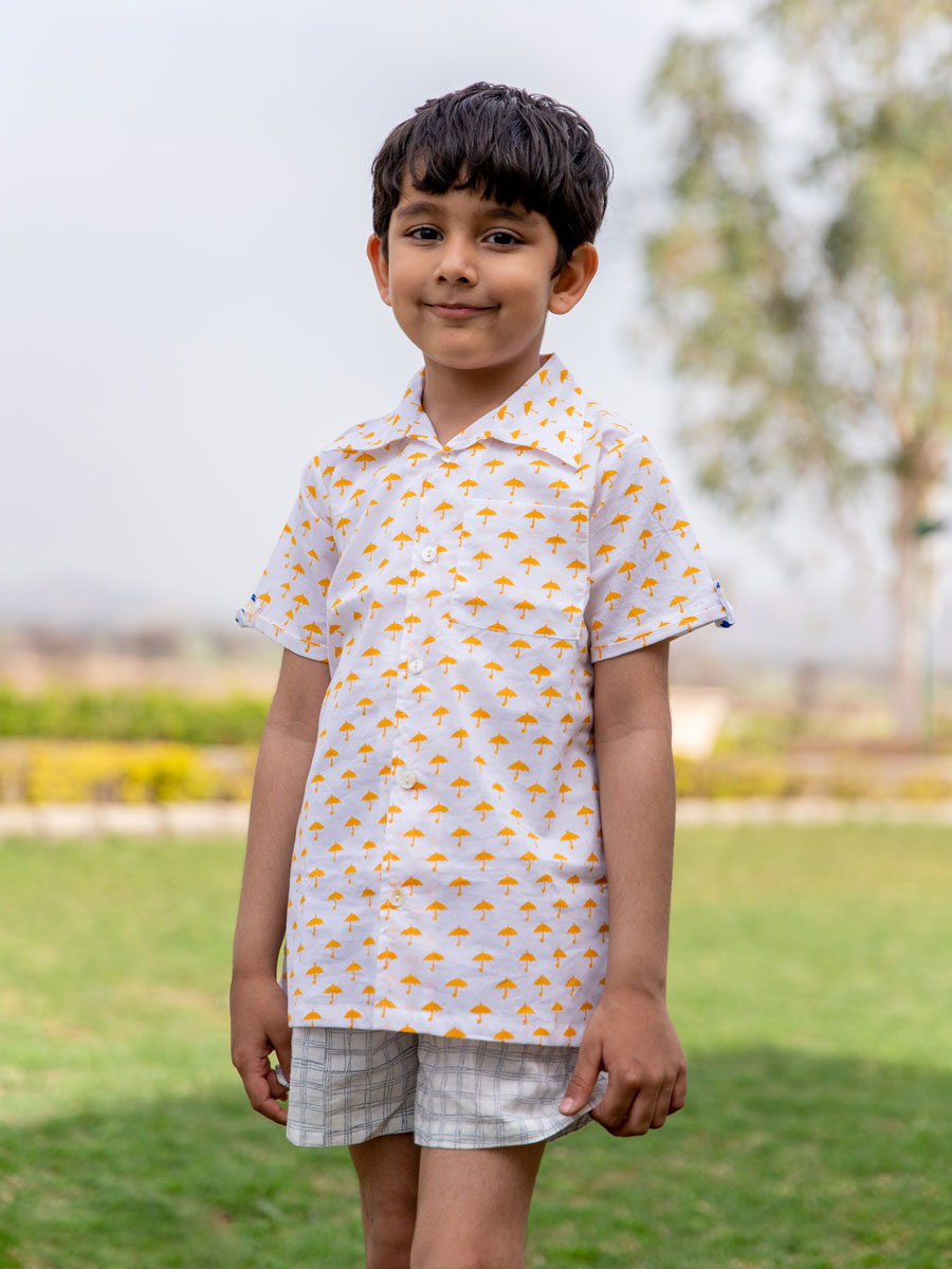 Yellow Umbrella Organic Cotton Block Printed Shirt