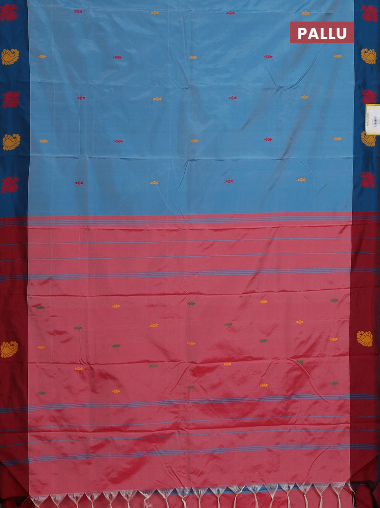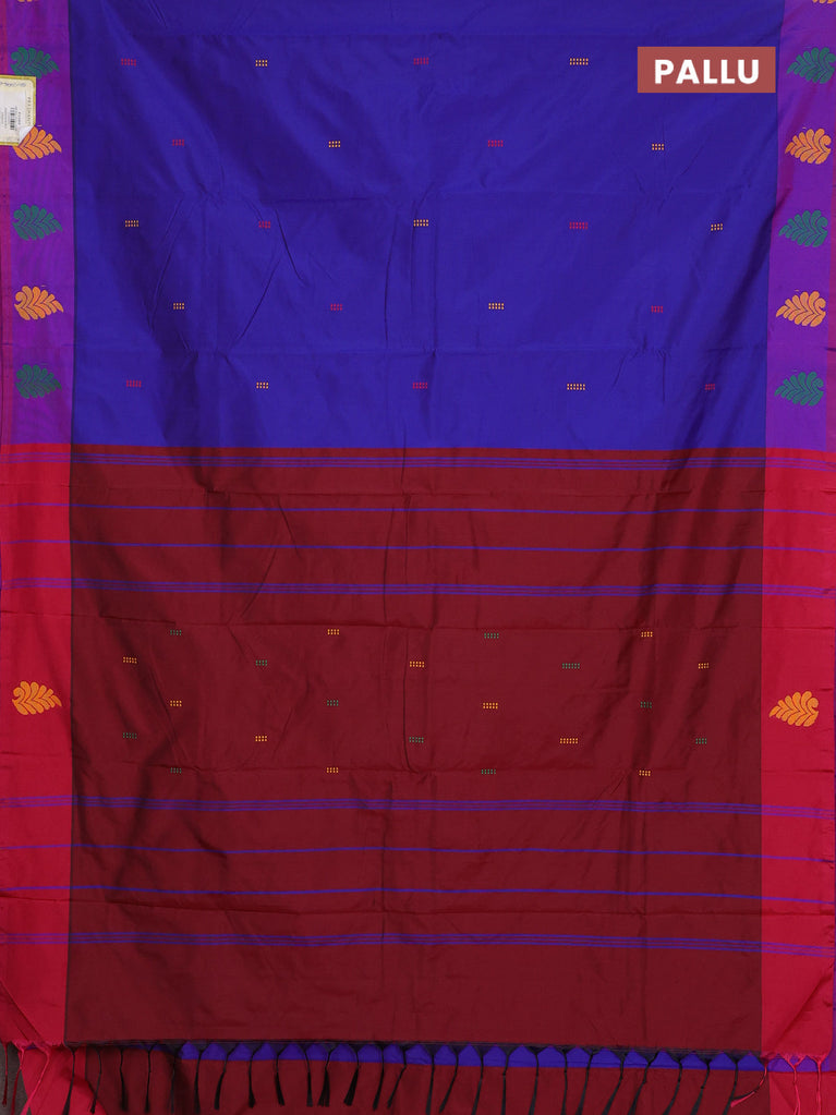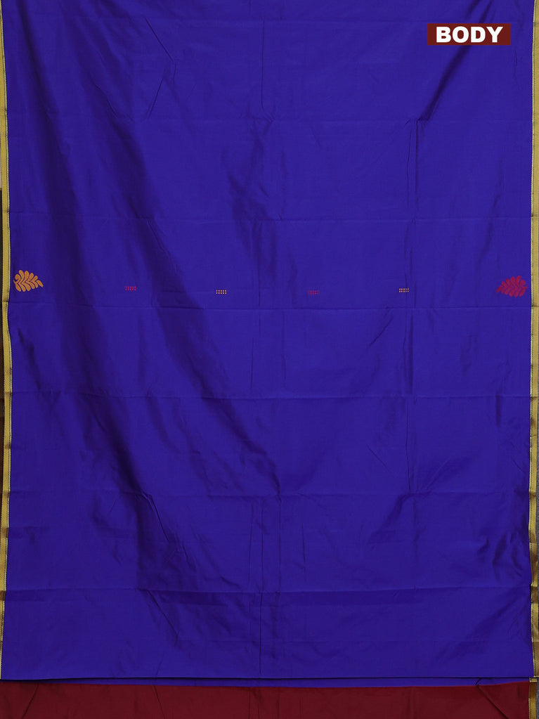 Arani semi silk saree blue and maroon with thread woven buttas and thread woven butta border