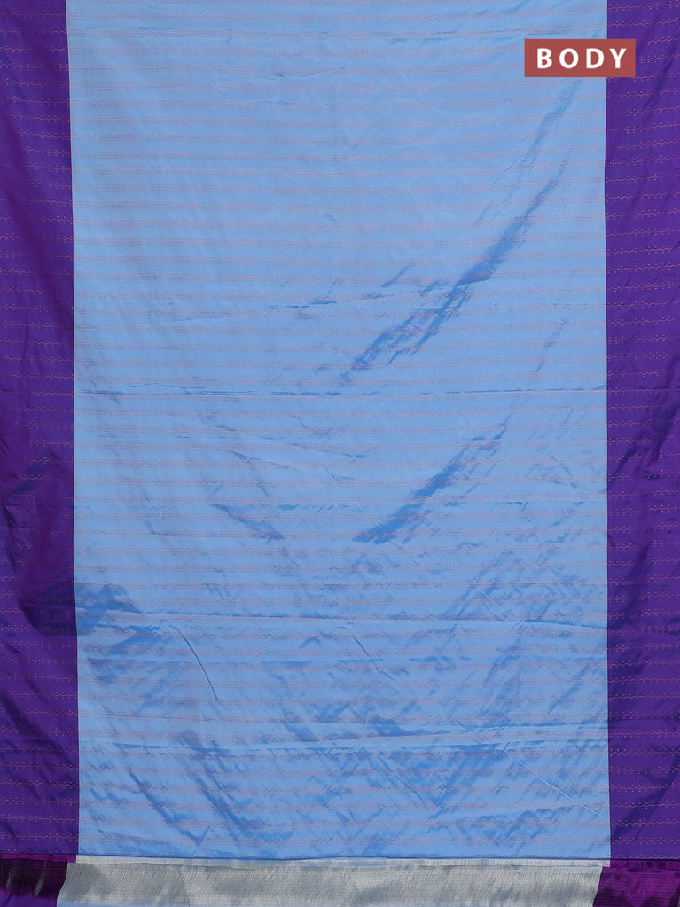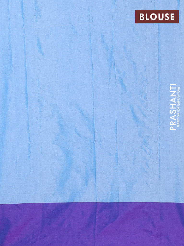 Arani semi silk saree blue and dual shade of violet with allover copper zari weaves and zari woven border