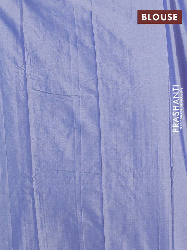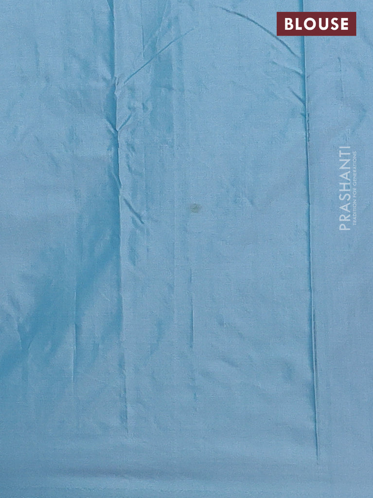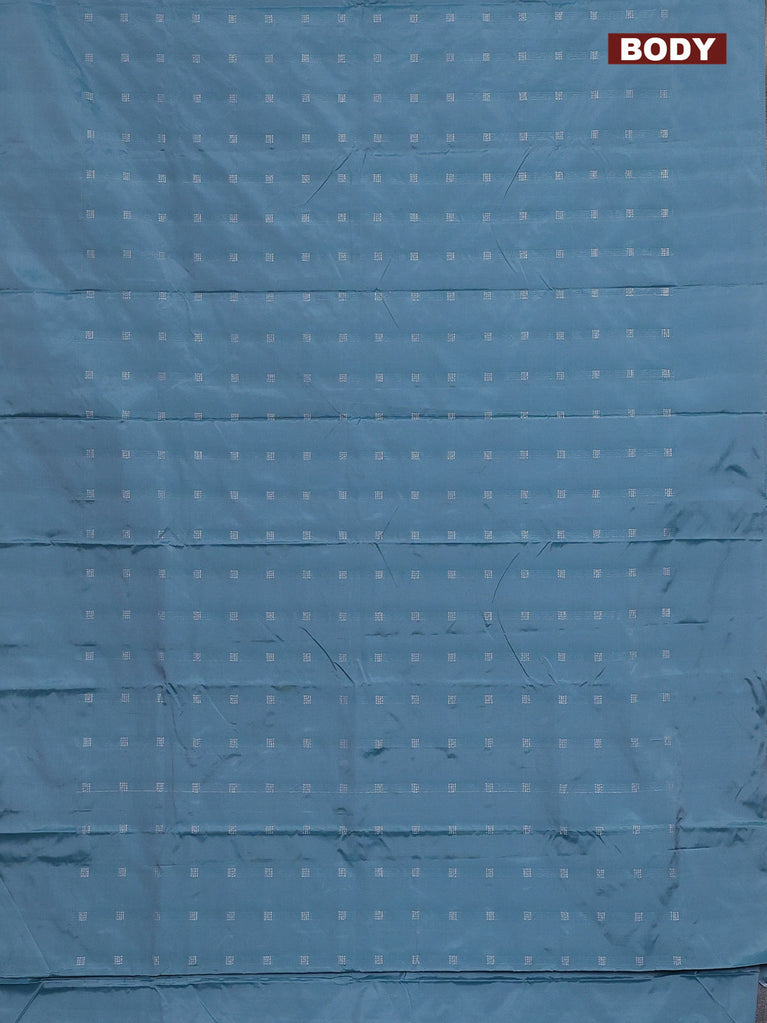 Arani semi silk saree blue shade with silver zari woven buttas in borderless style