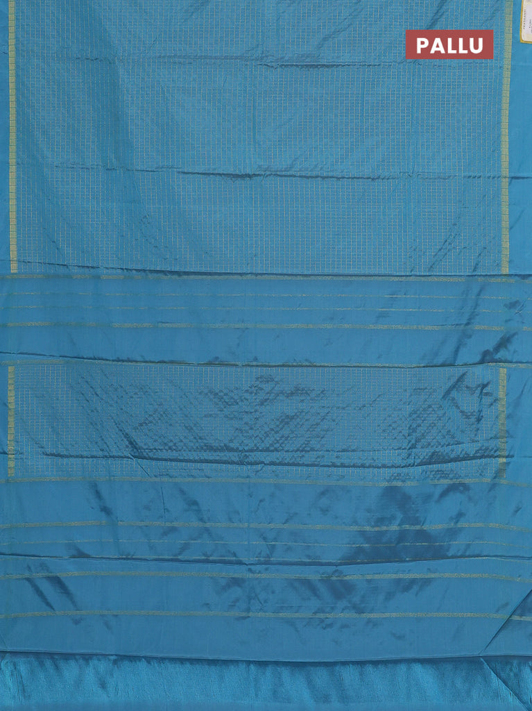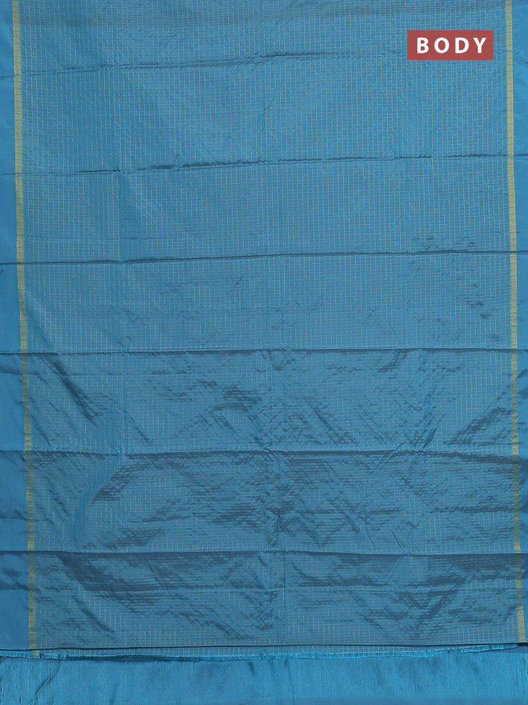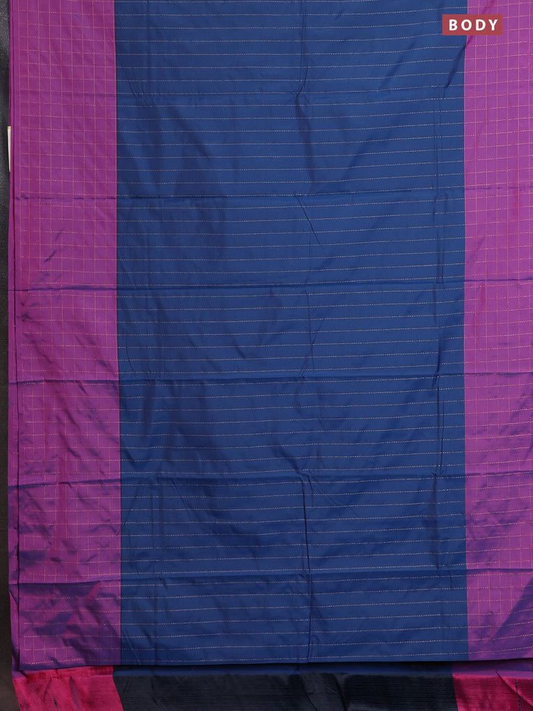Arani semi silk saree blue shade with allover small zari checked pattern and zari woven simple border