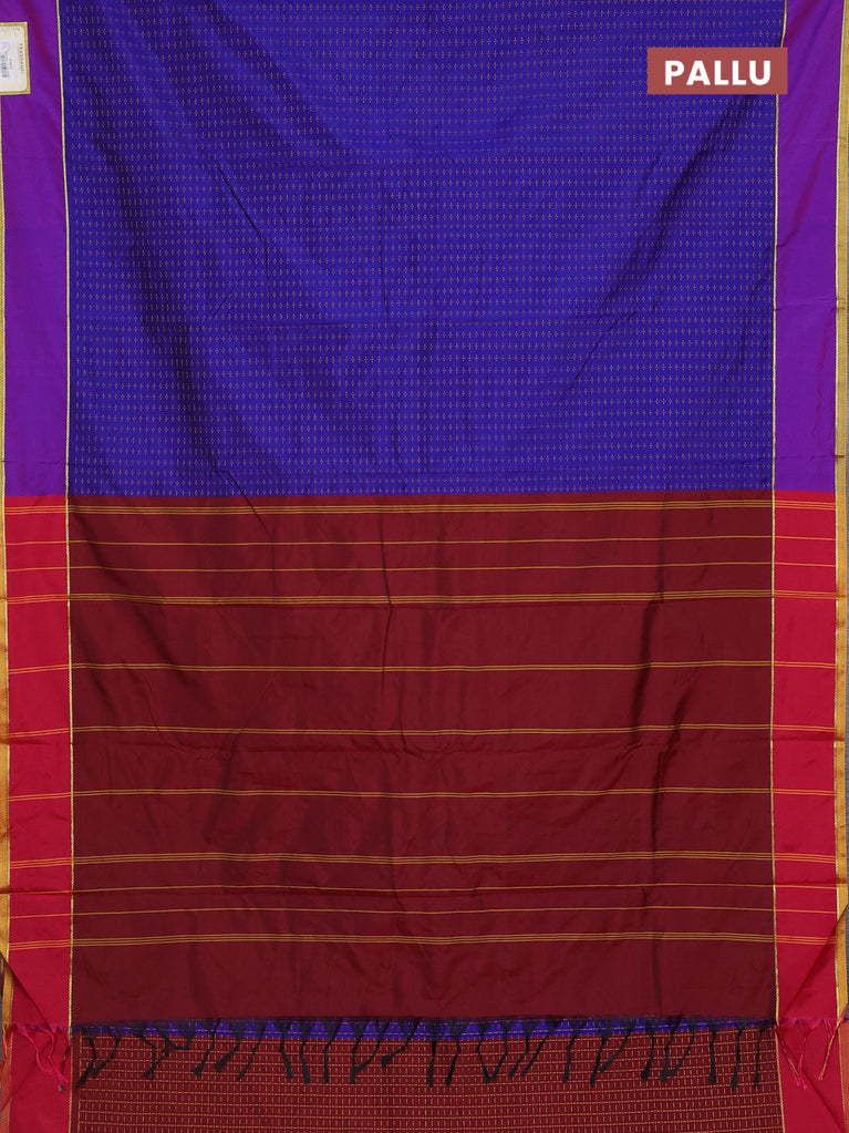 Arani semi silk saree blue and purple with allover thread weaves and rettapet zari woven border`