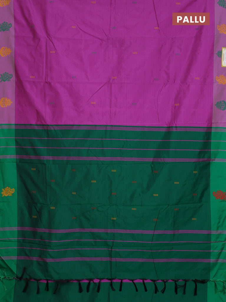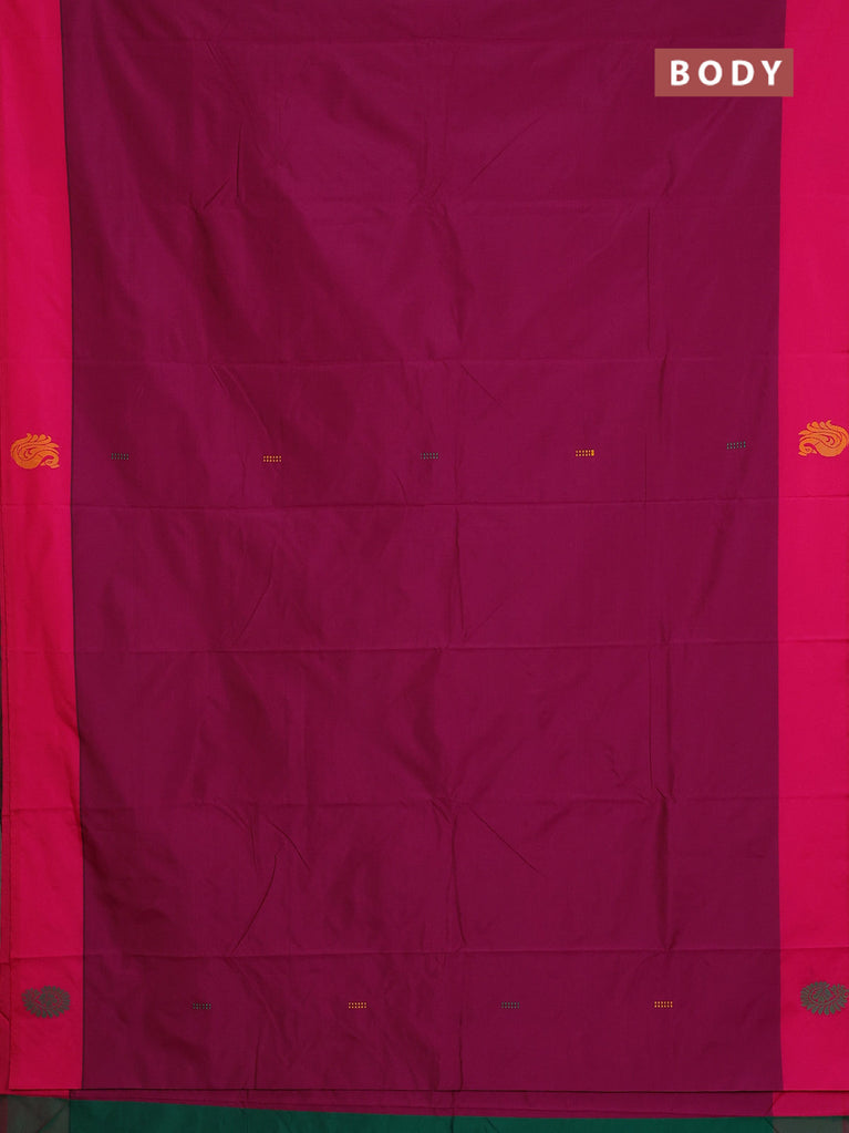 Arani semi silk saree magenta pink and dark green with allover thread weaves and rettapet zari woven border`
