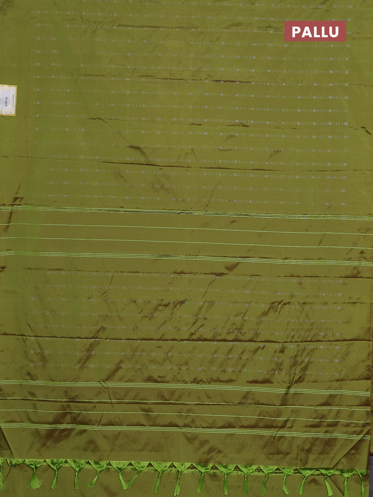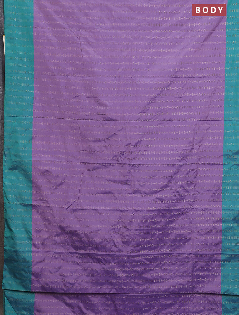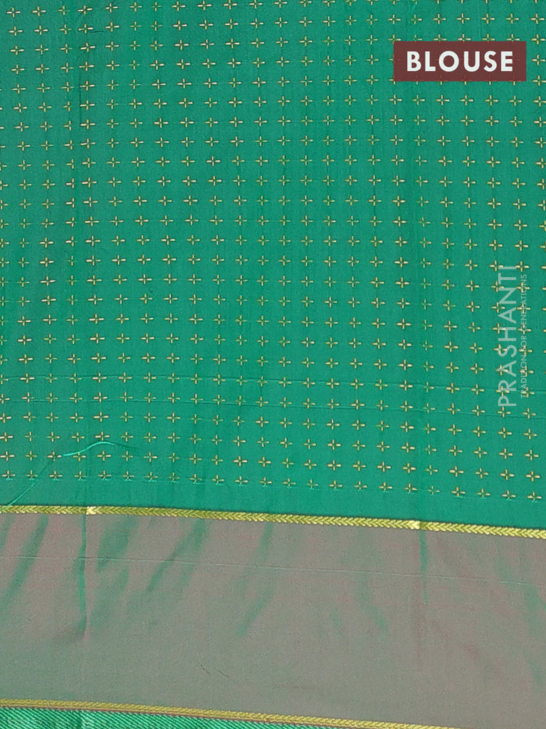 Arani semi silk saree lavender and teal green with allover silver & copper zari weaves and zari woven border