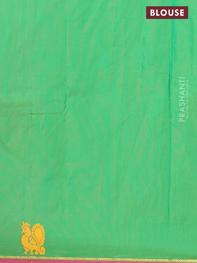 Arani semi silk saree magenta pink and dual shade of green with thread woven buttas and thread woven butta border