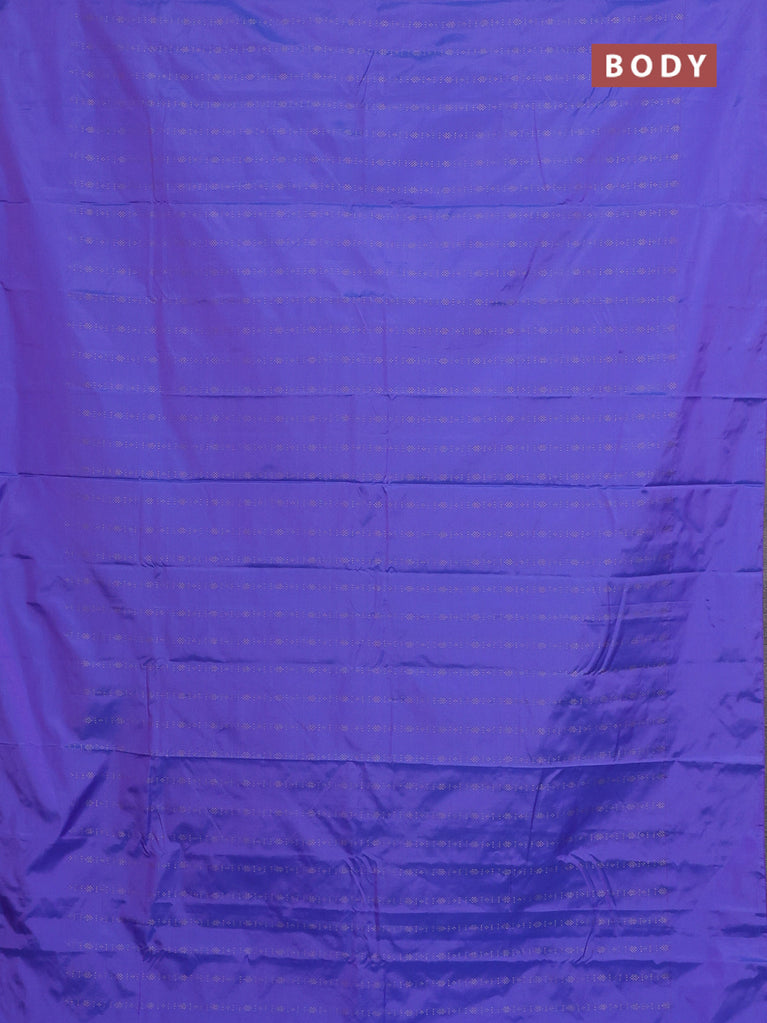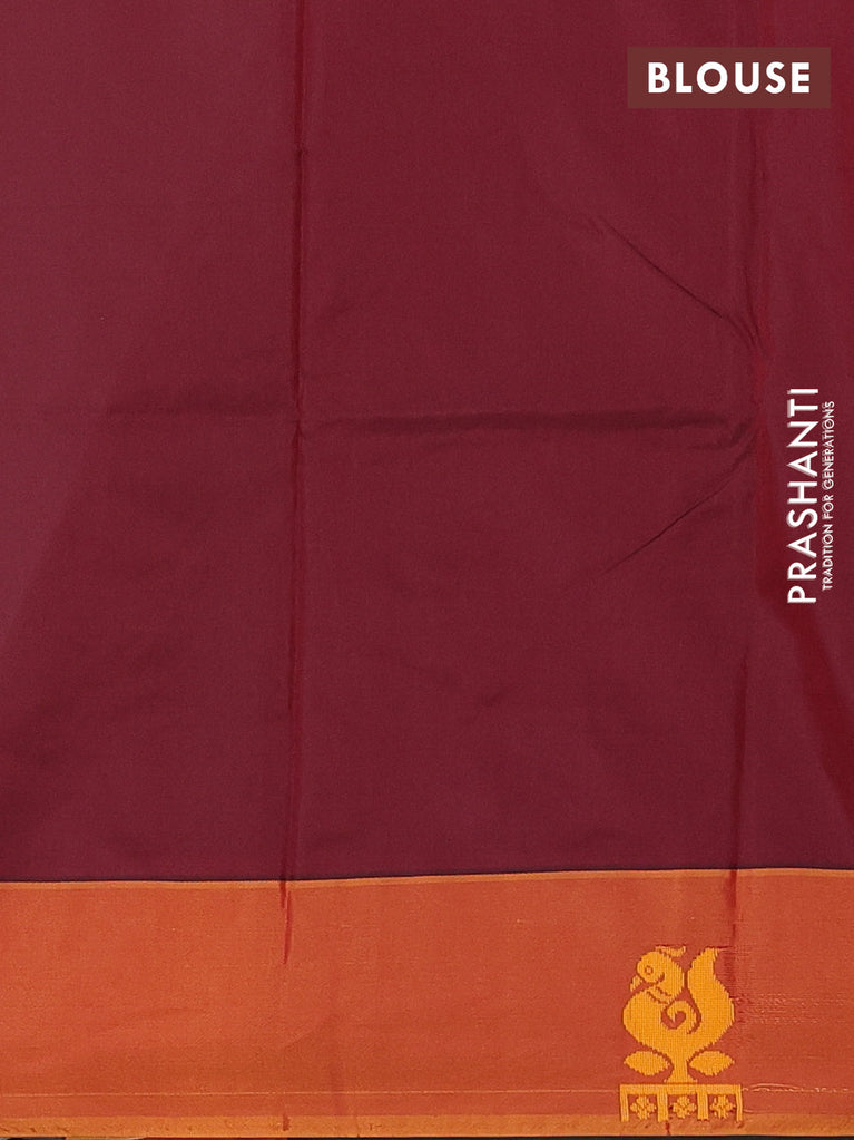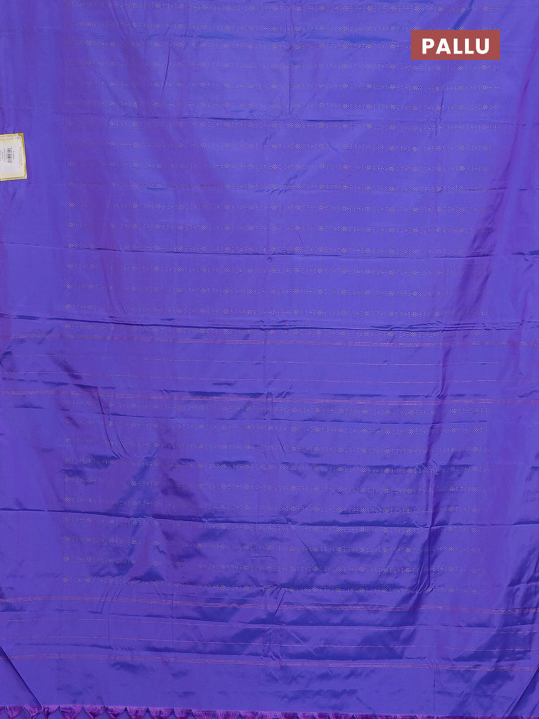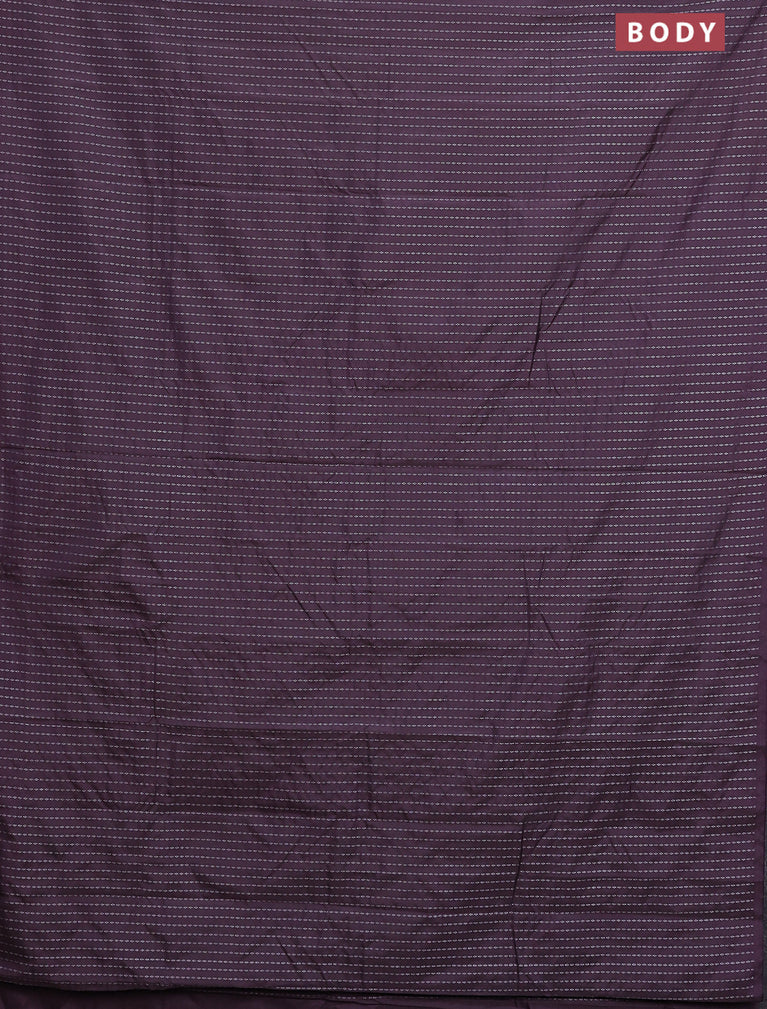 Arani semi silk saree jamun shade with allover silver zari weaves in borderless style