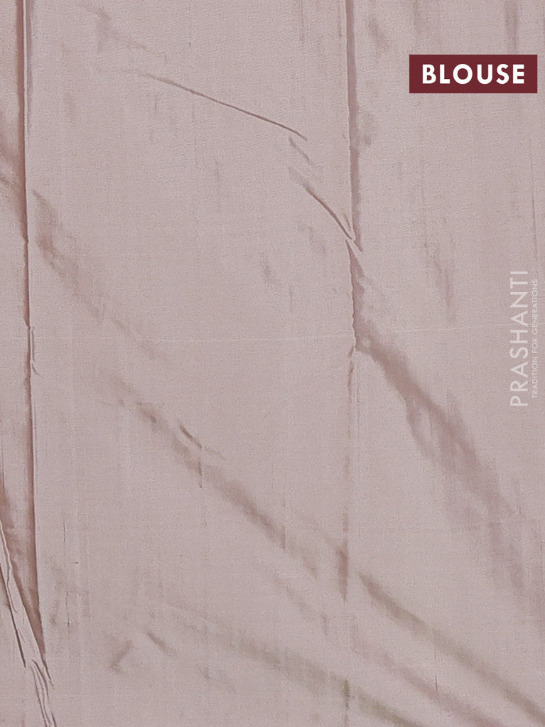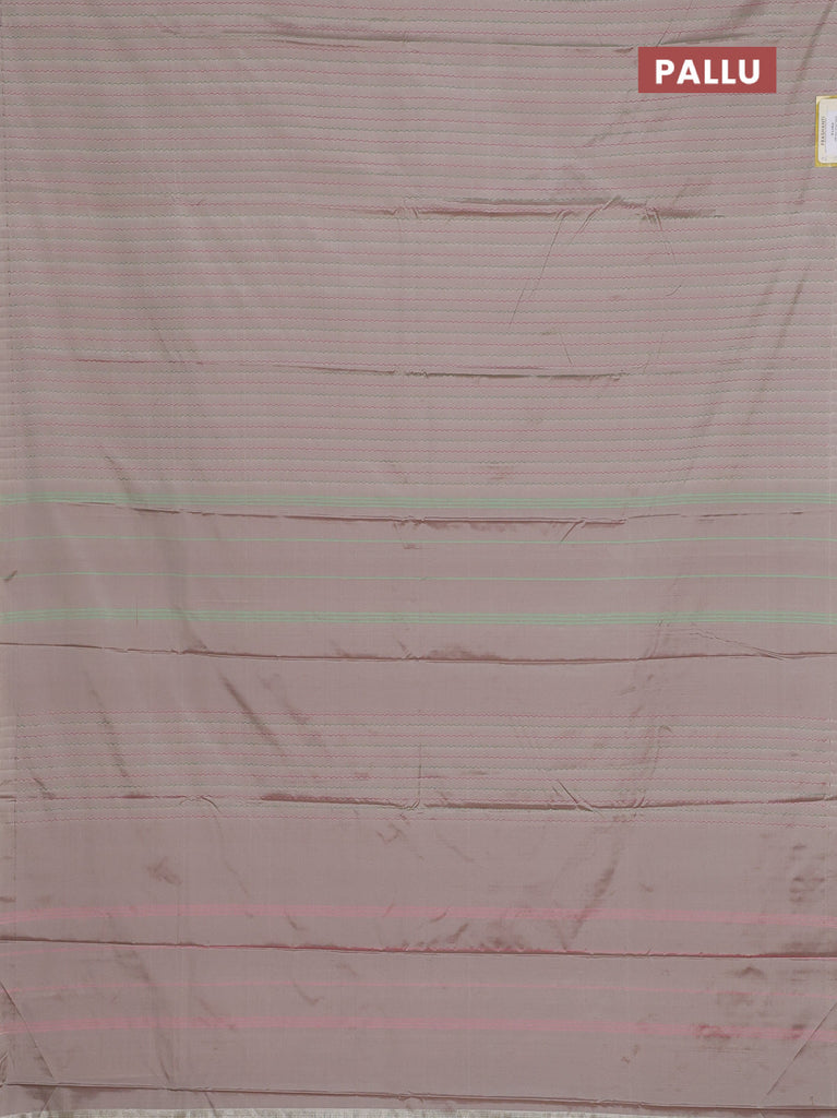 Arani semi silk saree grey shade and dual shade of pink with copper zari woven buttas and copper zari woven butta border