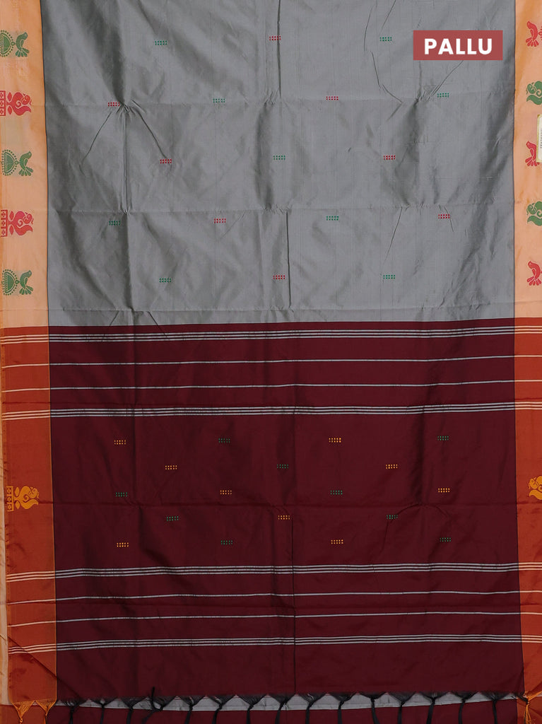 Arani semi silk saree grey and mustard yellow with thread woven buttas and thread woven butta border