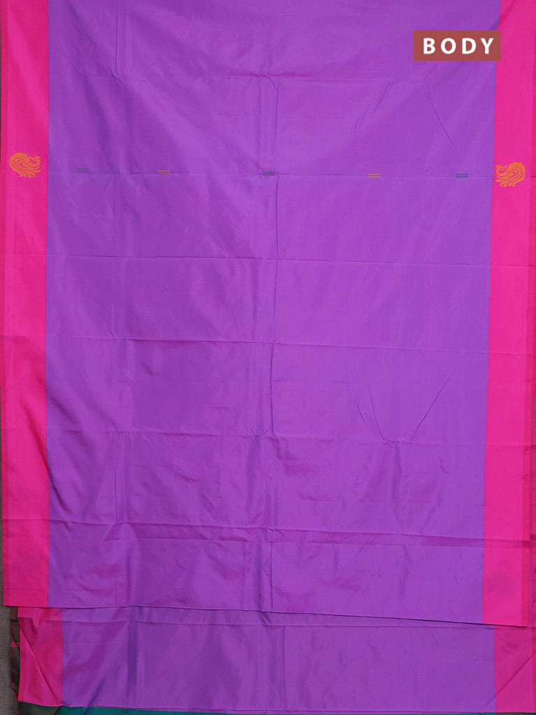 Arani semi silk saree lavender and dual shade of green with thread woven buttas and thread woven butta border
