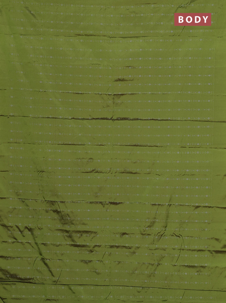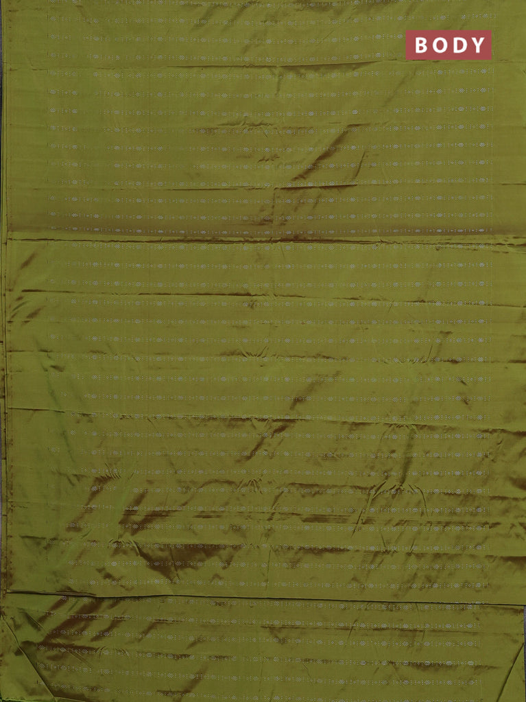 Arani semi silk saree lime green with allover silver zari weaves in borderless style