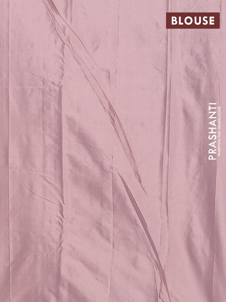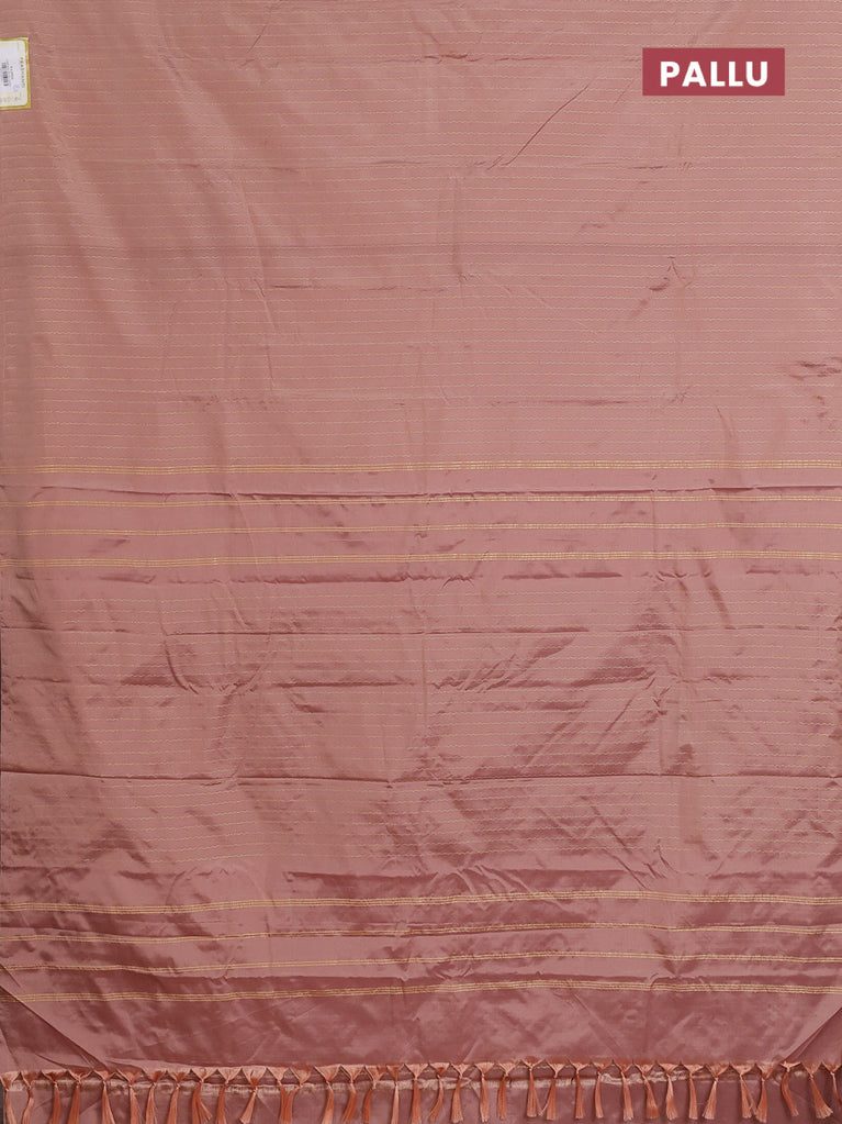 Arani semi silk saree pastel pink with allover copper zari weaves in borderless style