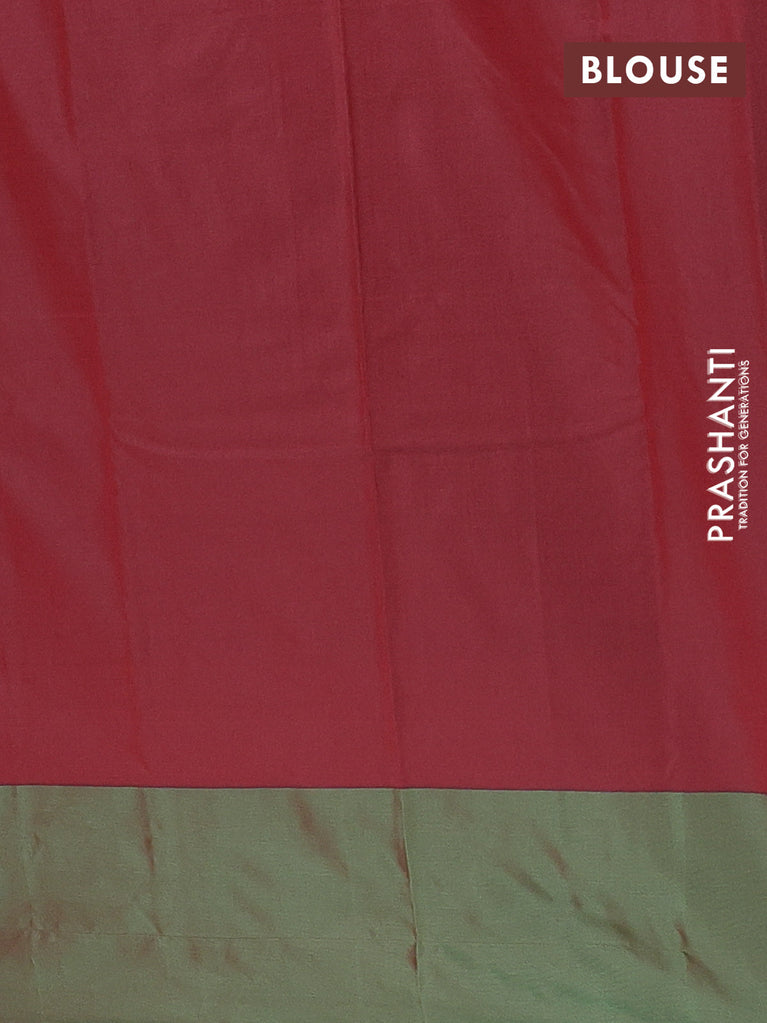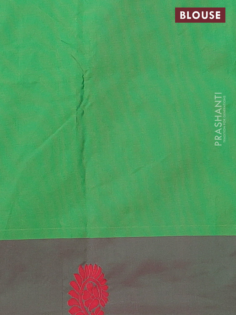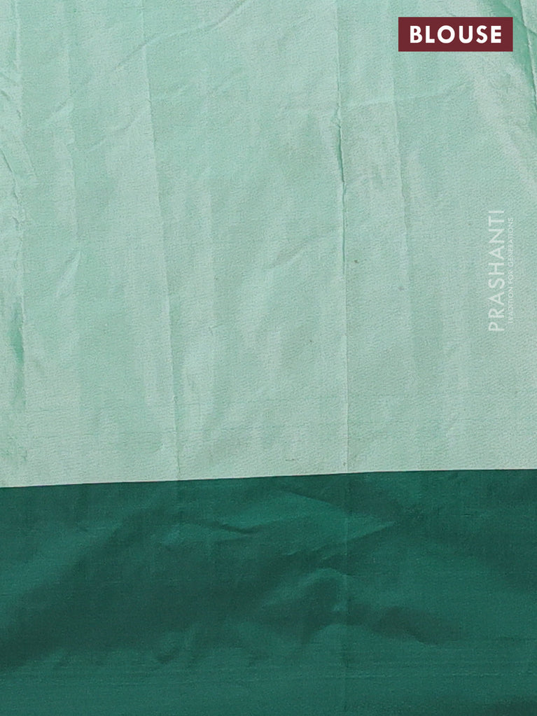 Arani semi silk saree peacock green and green with copper zari woven buttas and copper zari woven butta border