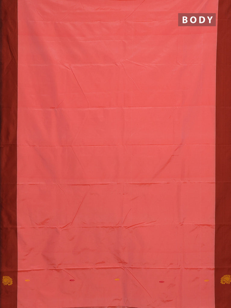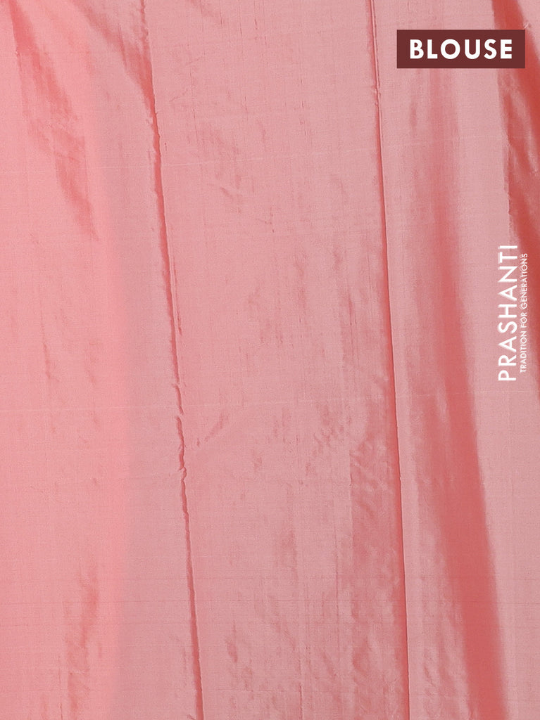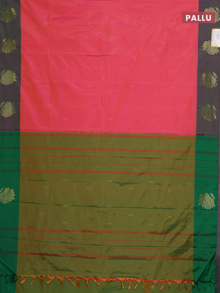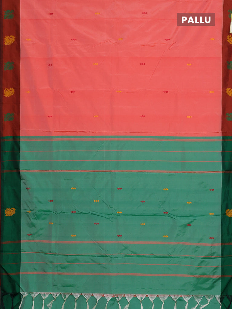 Arani semi silk saree peach pink and green with zari woven buttas and zari woven butta border