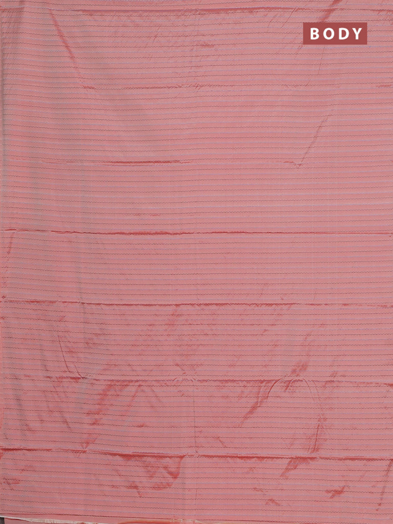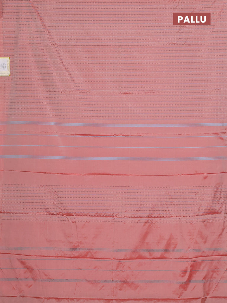 Arani semi silk saree pastel peach with allover silver zari weaves in borderless style