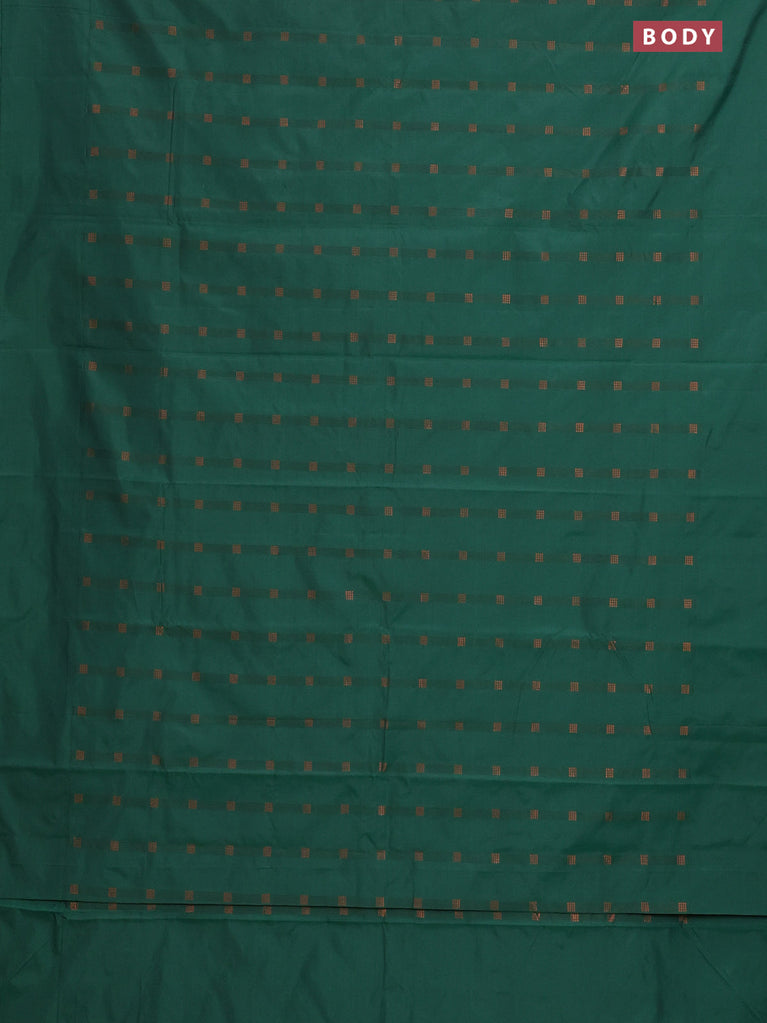 Arani semi silk saree greeen with copper zari woven buttas in borderless style