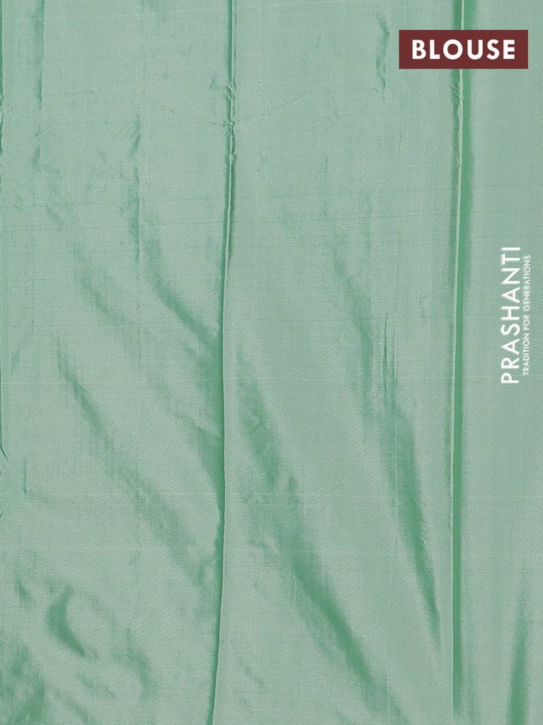 Arani semi silk saree green and peacock blue with allover silver & copper zari weaves and zari woven border
