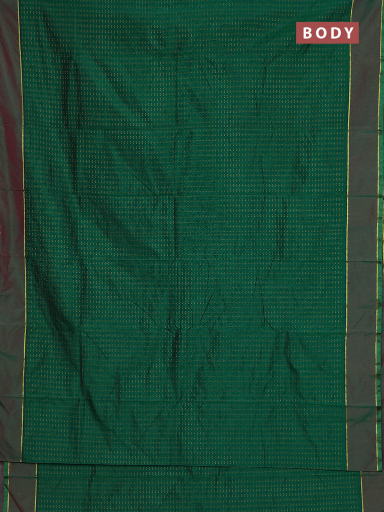 Arani semi silk saree green and dark sap green with allover silver & copper zari weaves and zari woven border