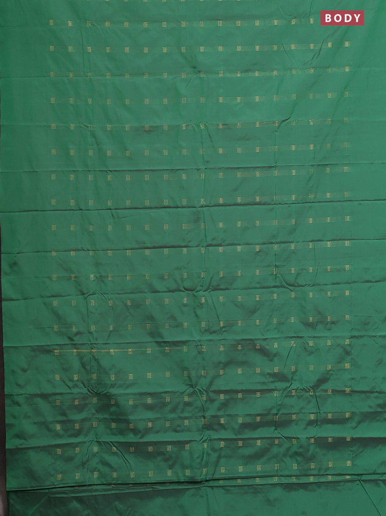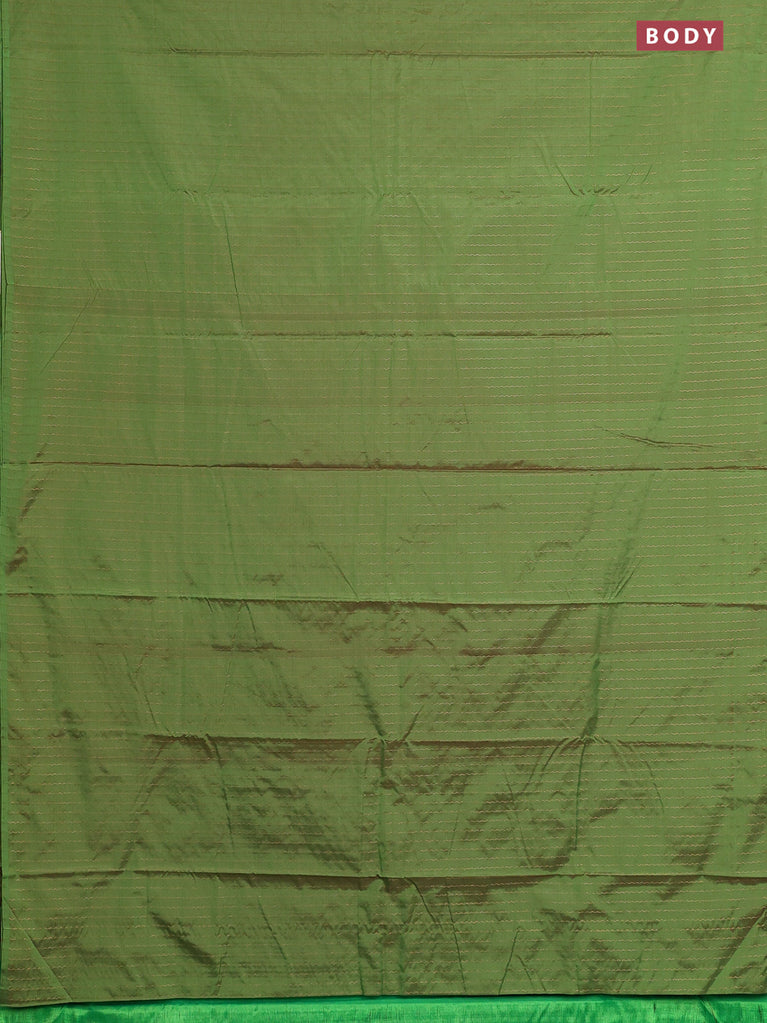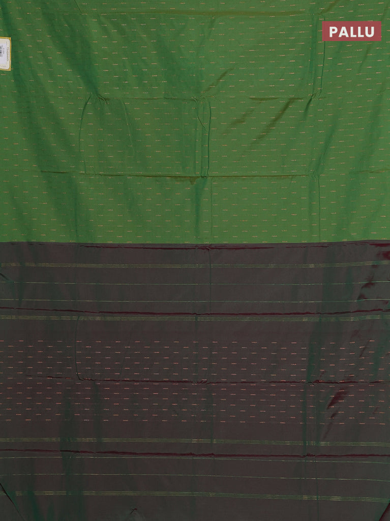 Arani semi silk saree green with copper zari woven buttas in borderless style