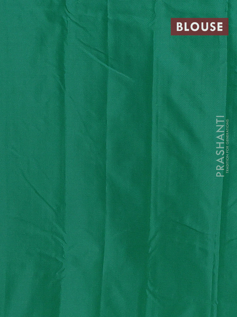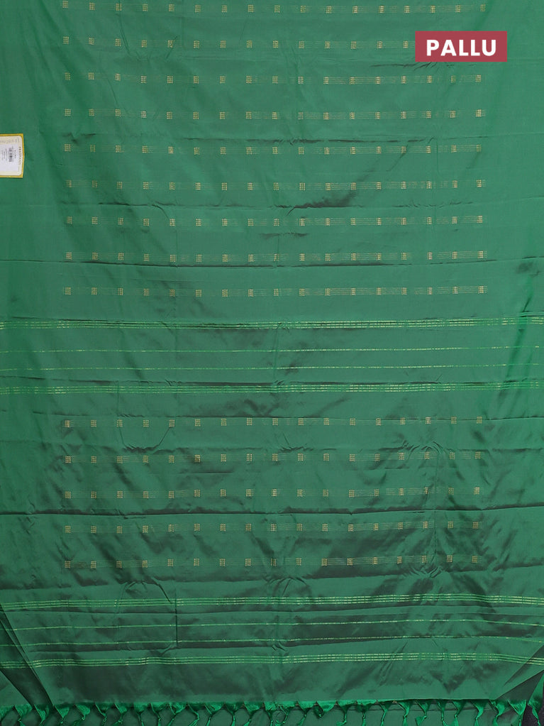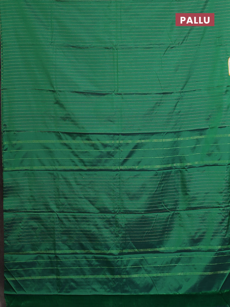 Arani semi silk saree green with allover silver zari weaves in borderless style