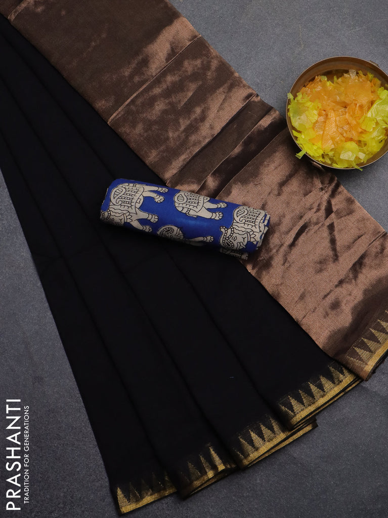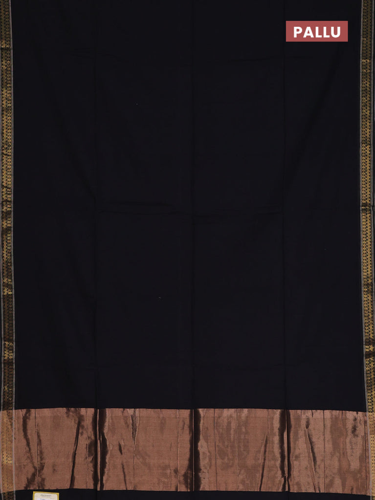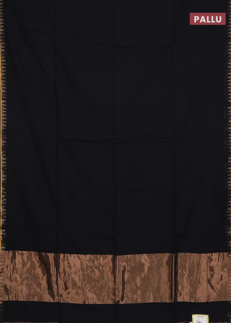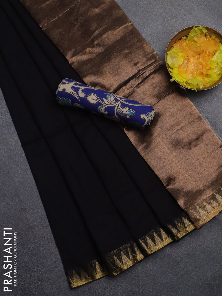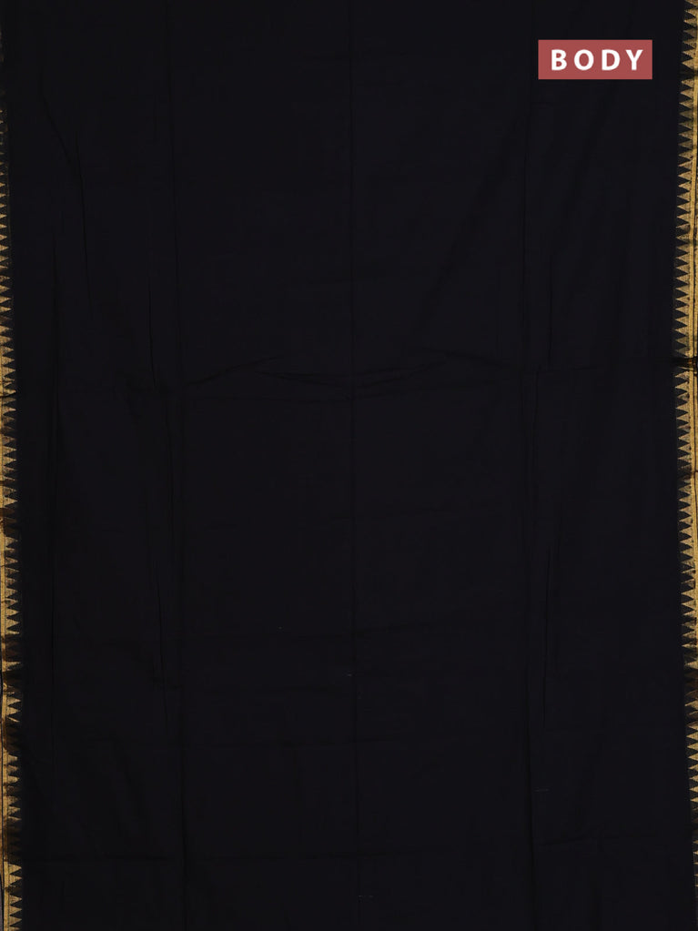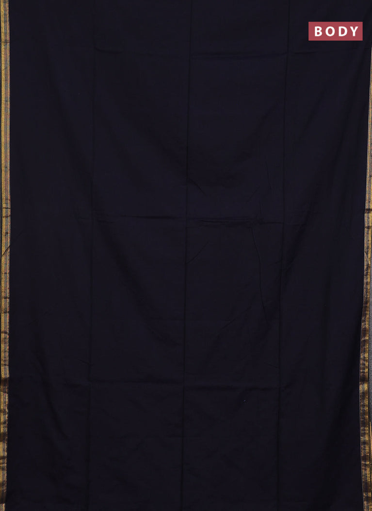 Bengal soft cotton saree black and blue with plain body and zari woven border