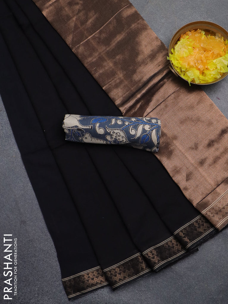 Bengal soft cotton saree black and cs blue with plain body and zari woven border