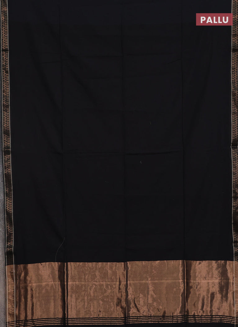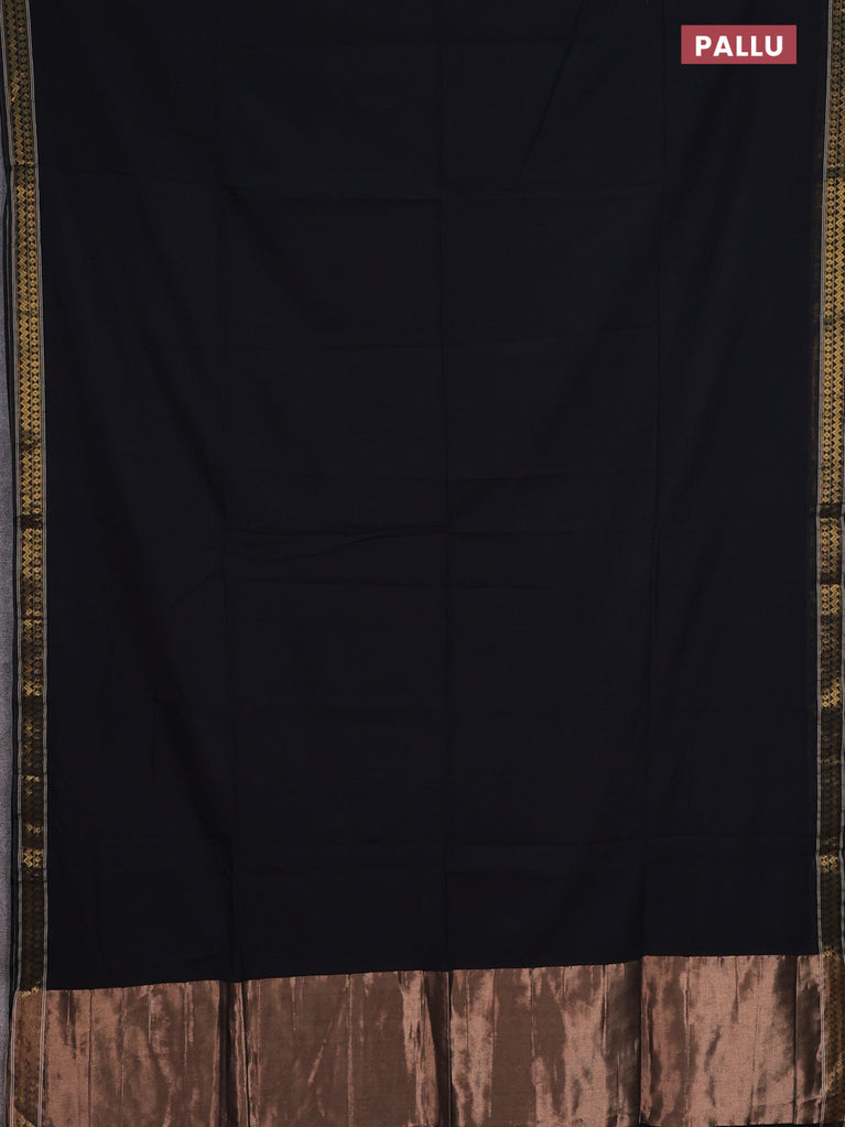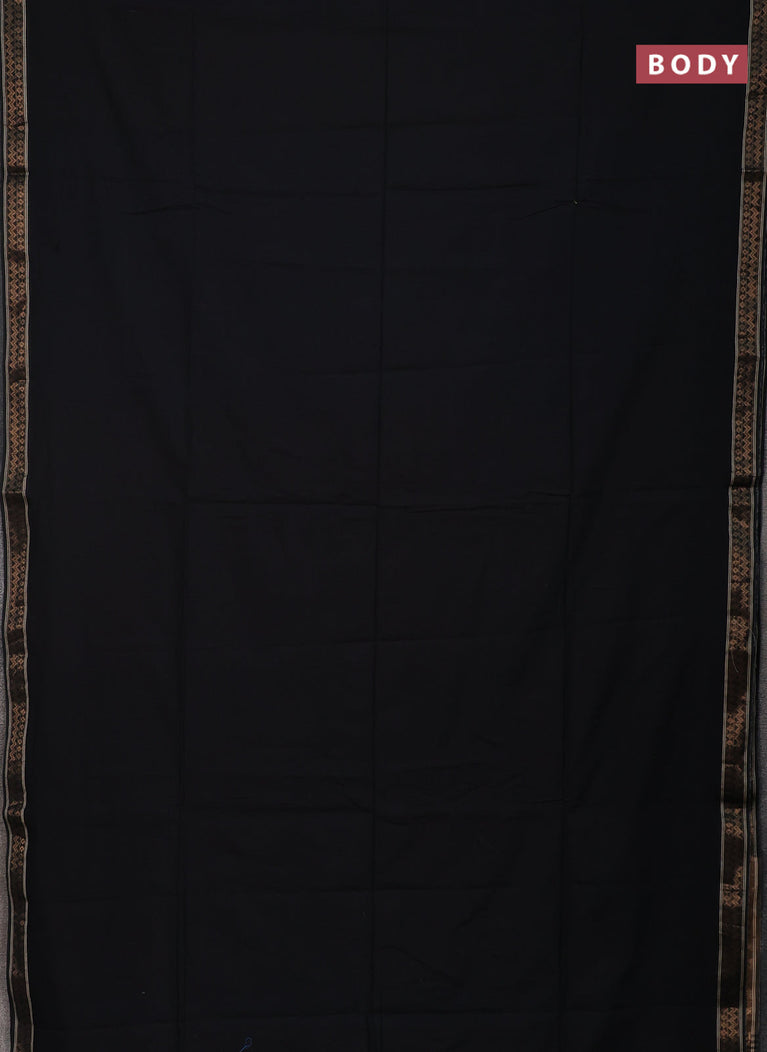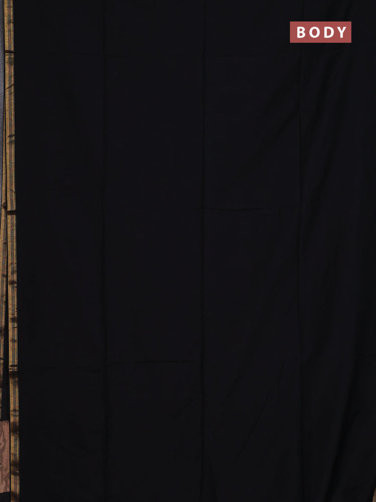 Bengal soft cotton saree black and bluish grey with plain body and zari woven border