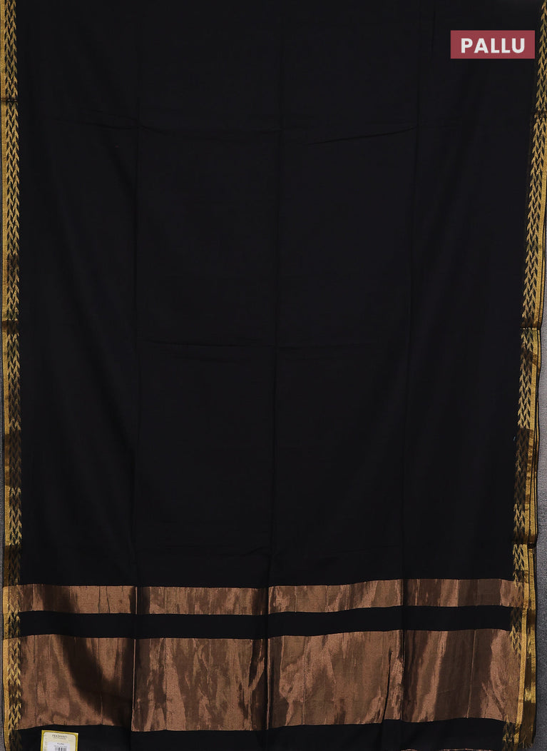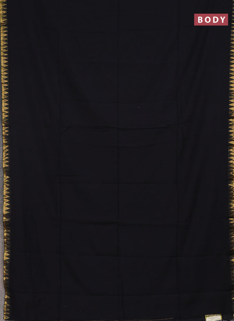 Bengal soft cotton saree black and green with plain body and zari woven border