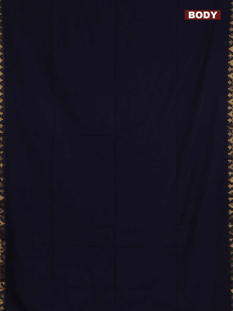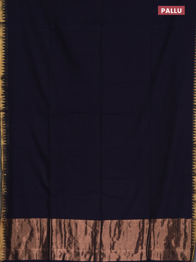 Bengal soft cotton saree navy blue with plain body and zari woven border