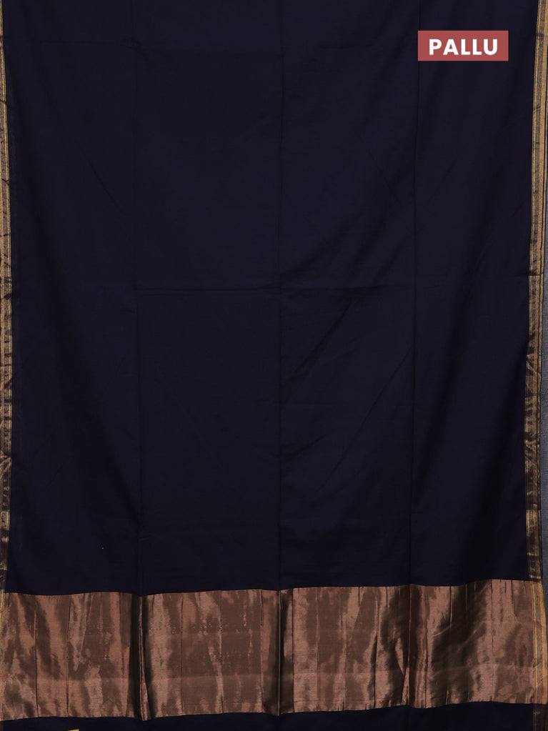 Bengal soft cotton saree navy blue and grey with plain body and zari woven border
