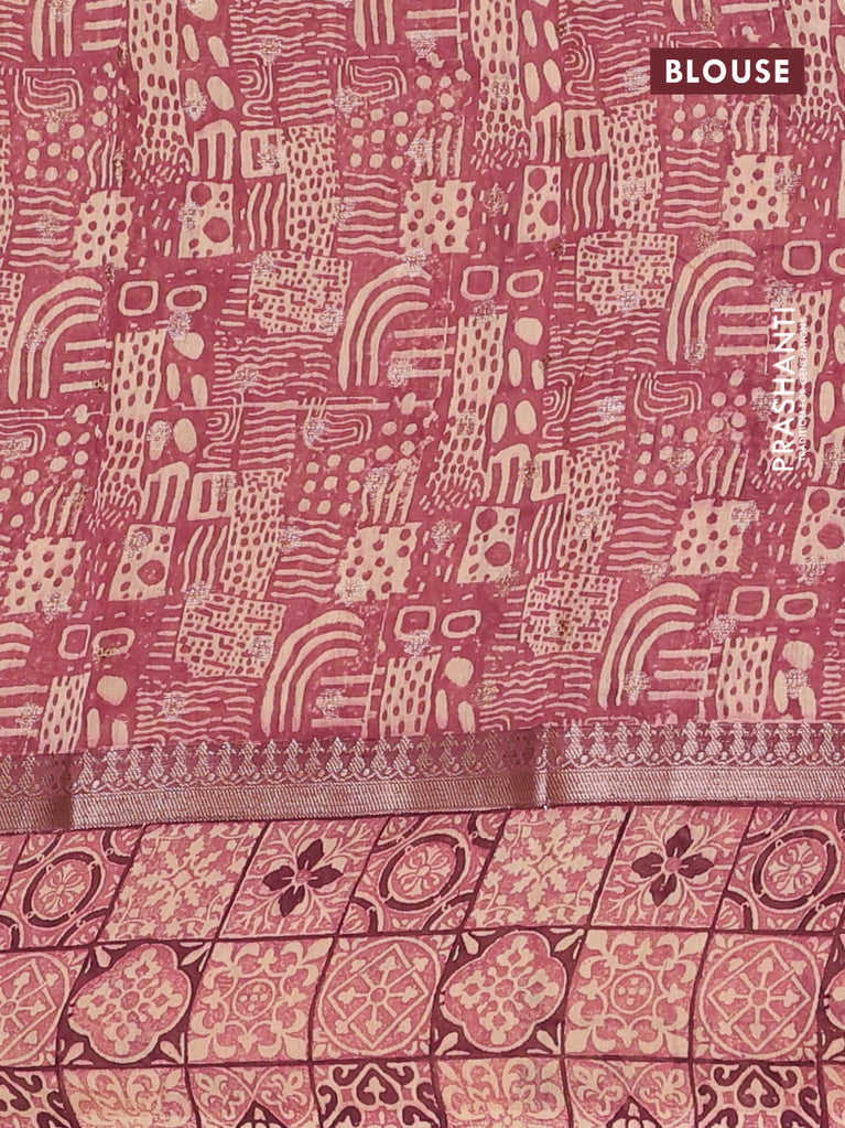 Chanderi silk cotton saree wine shade and pink with allover kalamkari prints and banarsi style border