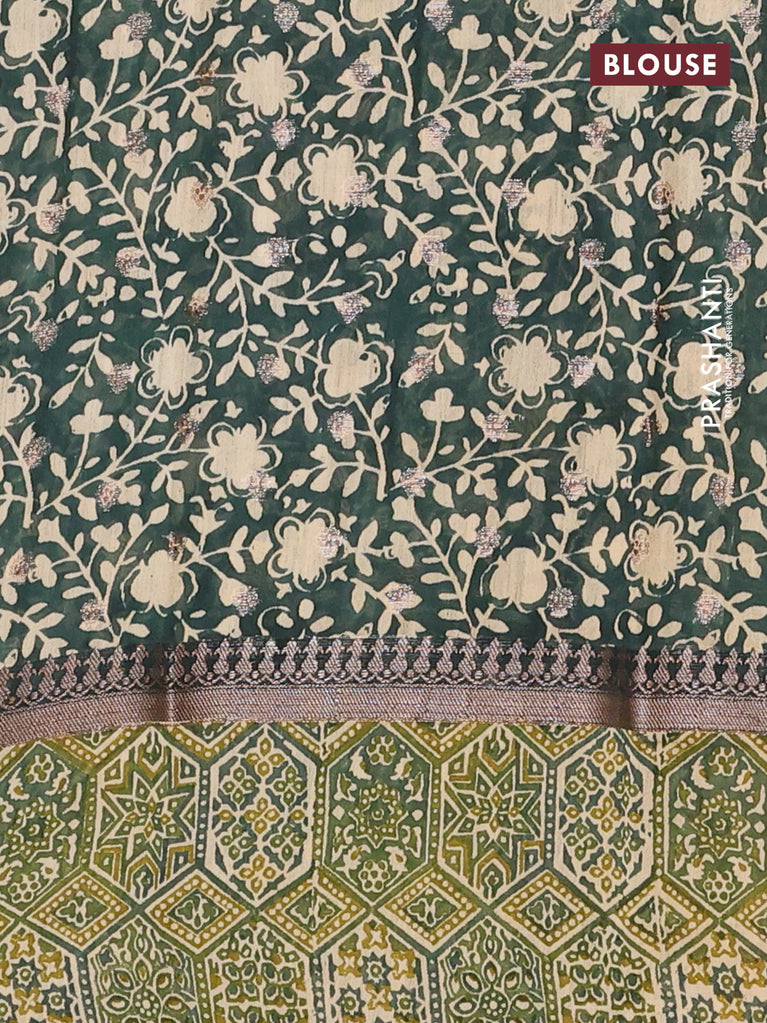 Chanderi silk cotton saree sap green and beige with allover zari buttas and printed border
