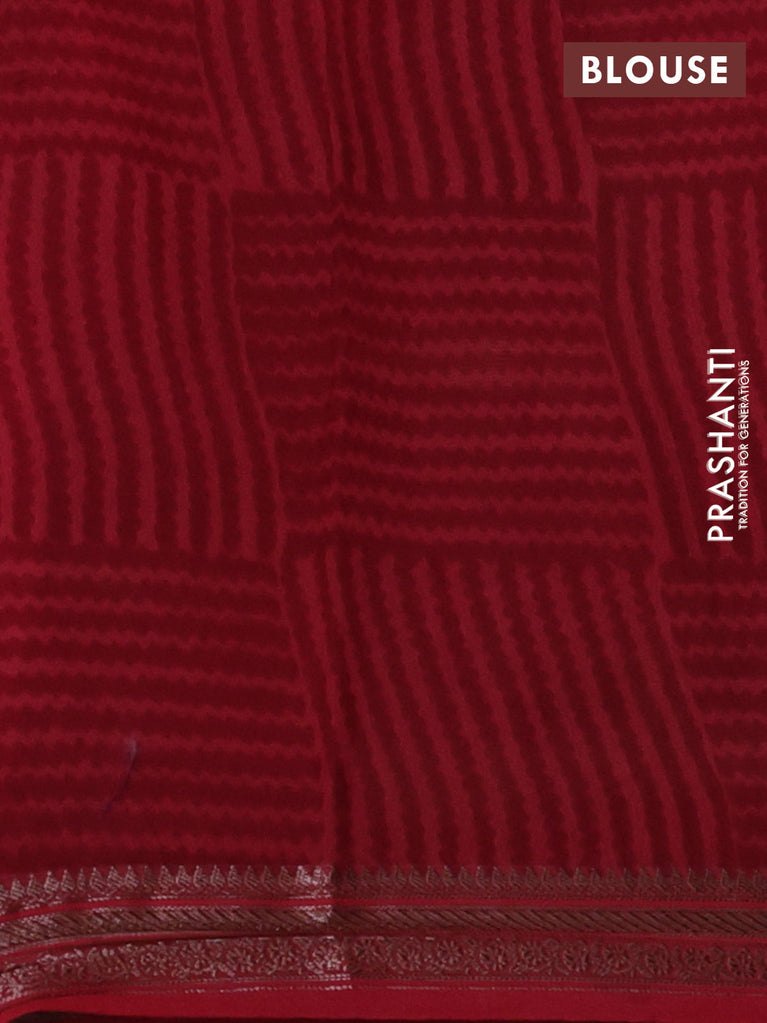 Chanderi silk cotton saree sandal sap green and red with allover geometric prints and banarasi style border