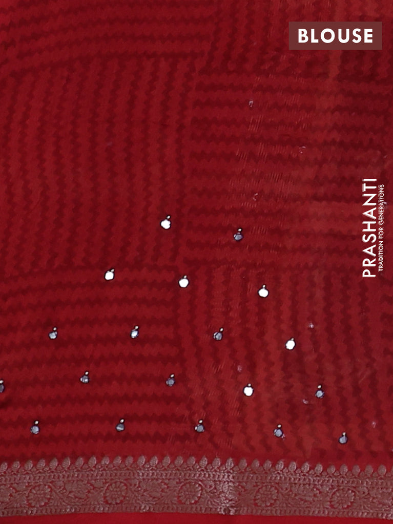 Chanderi silk cotton saree rustic orange and red with allover geometric prints & mirror work and woven border