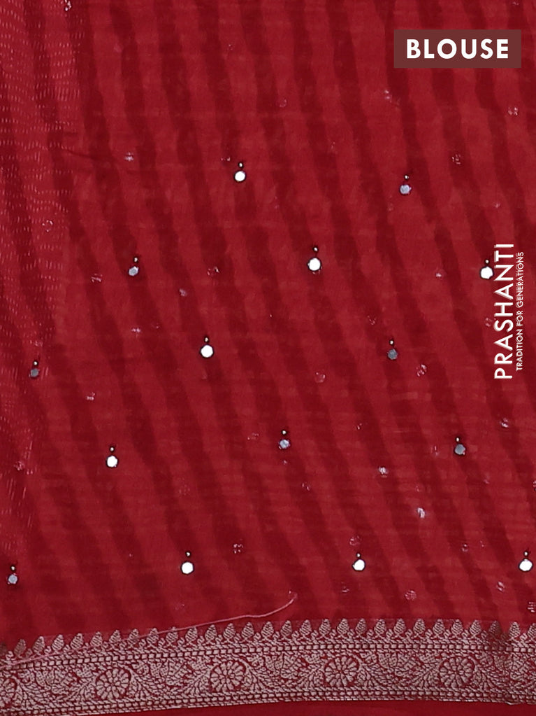 Chanderi silk cotton saree wine shade with allover prints & mirror work and woven border