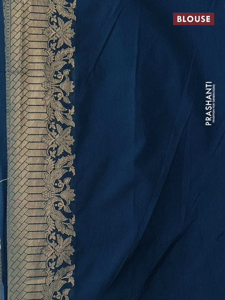 Banarasi silk saree peacock blue with allover zari woven brocade weaves and zari woven border