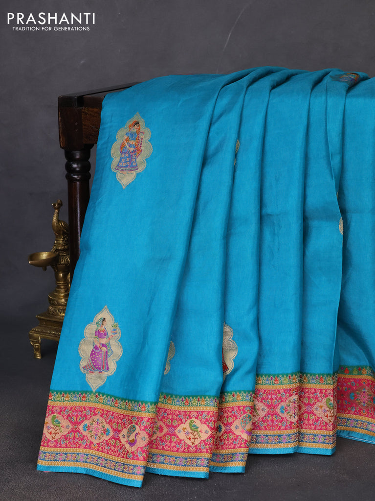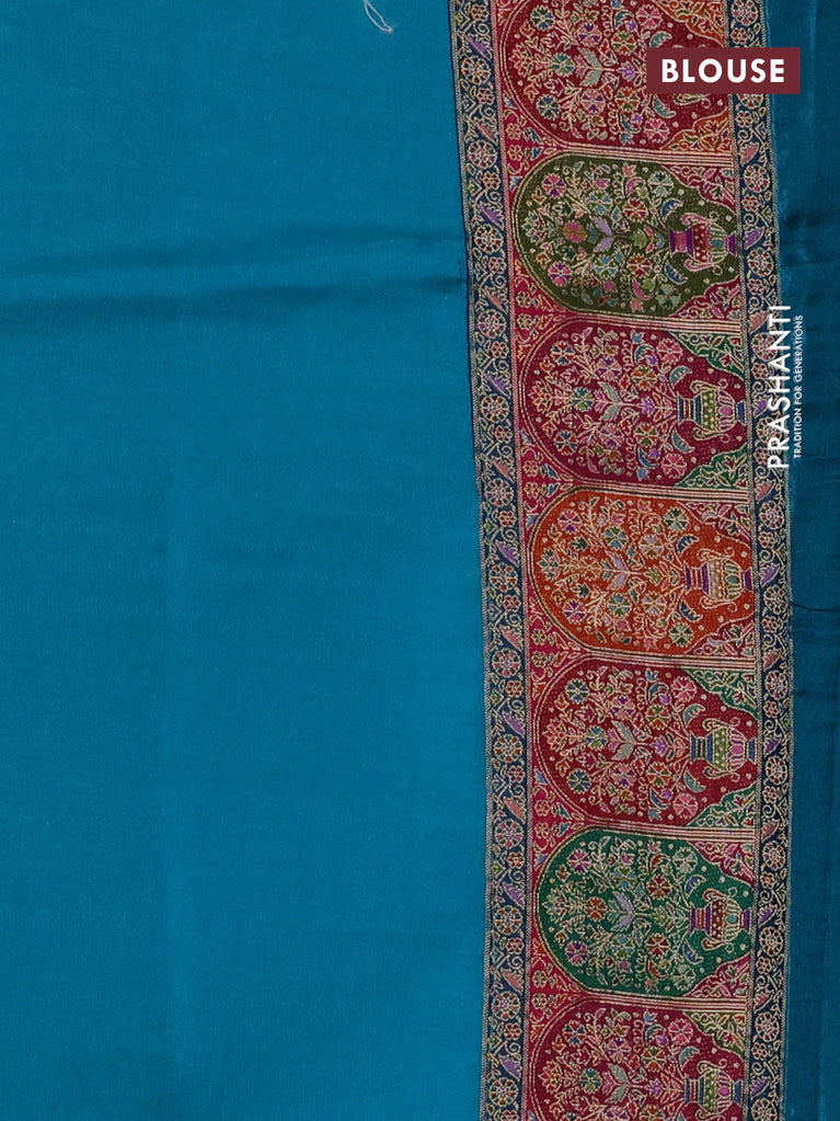 Banarasi silk saree teal blue with allover zari woven brocade weaves and zari woven border