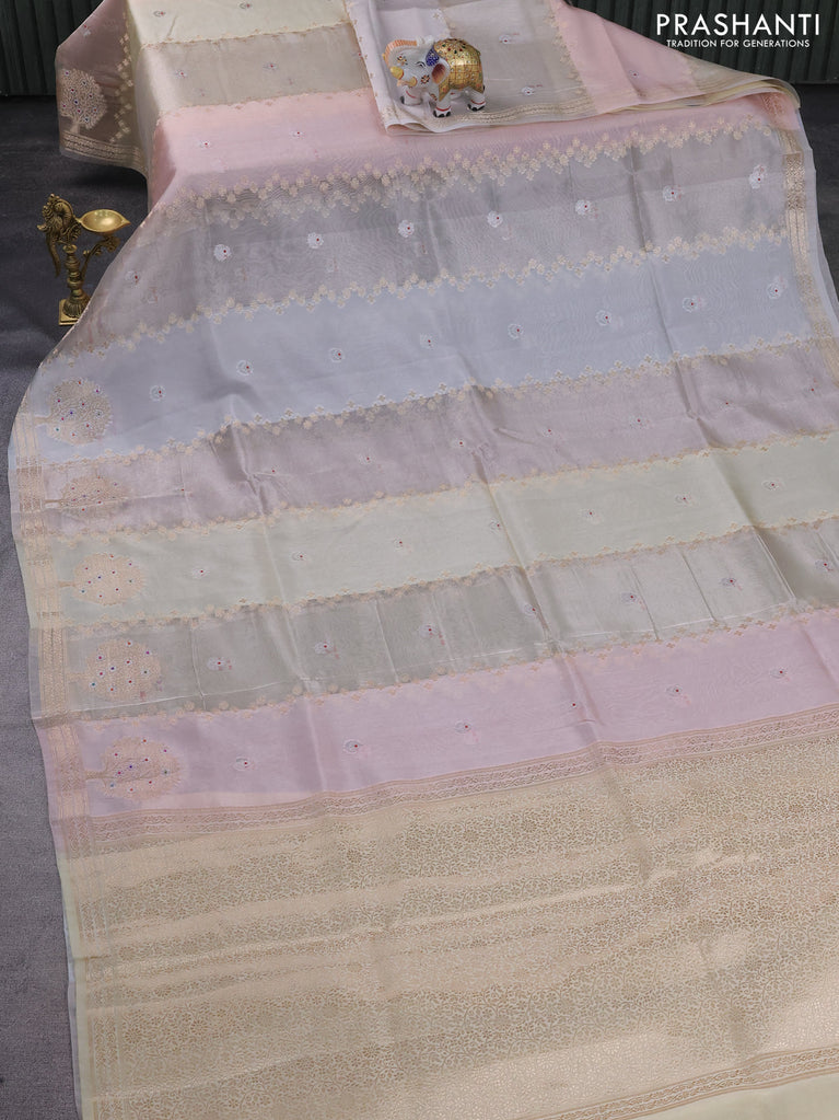 Banarasi tissue semi silk saree pastel shade and pastel lavender with allover zari weaves and zari woven floral border