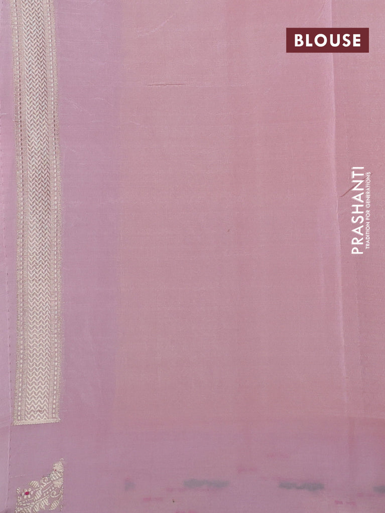 Banarasi tissue semi silk saree pastel lavender and peach pink with zari weaves & buttas and zari woven butta border