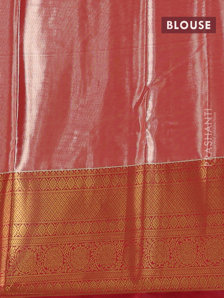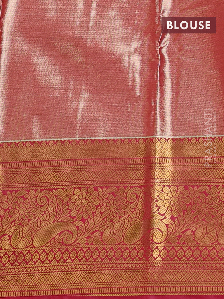 Bangalori tissue silk saree light pink and red with allover zari woven brocade weaves and long zari woven border