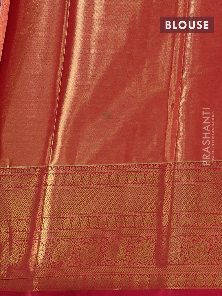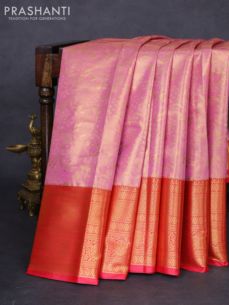 Bangalori tissue silk saree mild lavender and reddish pink with allover zari woven brocade weaves and long zari woven border