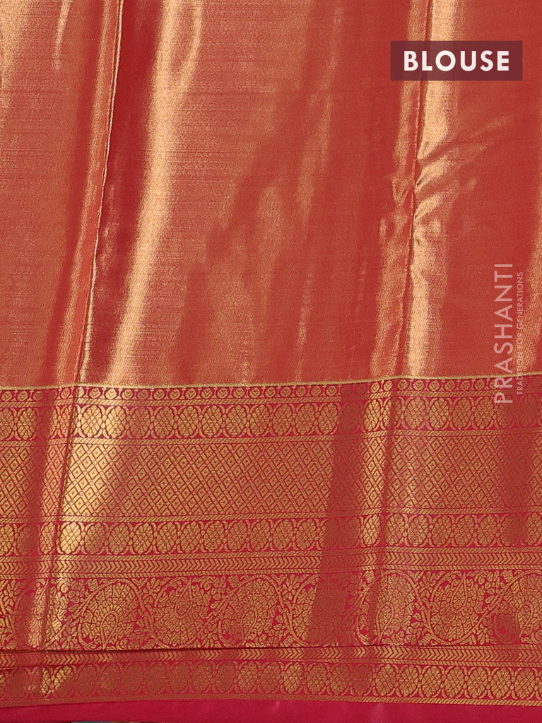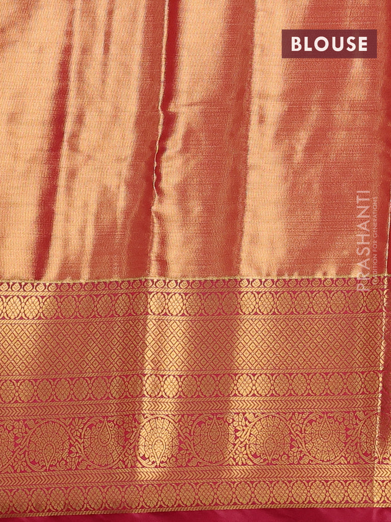 Bangalori tissue silk saree dual shade of mehendi green and reddish pink with allover zari woven brocade weaves and long zari woven border